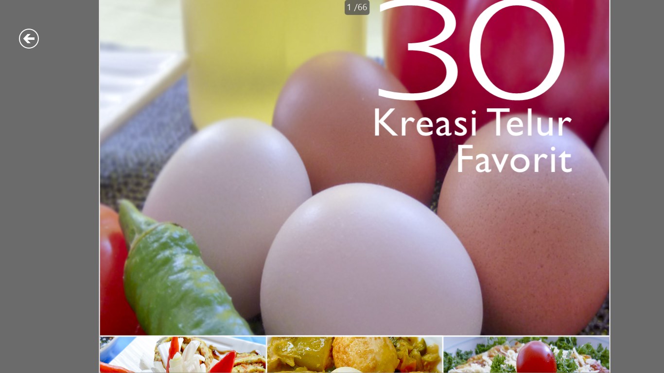 Aplikasi 30 Resep Telur Favorit akan membantu untuk mengkreasikan beberapa masakan dengan bahan dasar telur. 30 Resep Telur Favorit menampilkan 30 resep praktis untuk hidangan berbahan dasar telur. Buku digital ini dilengkapi pula dengan gambar pendukung beresolusi tinggi yang menampilkan hasil masakan dan detail resep di setiap masakan.