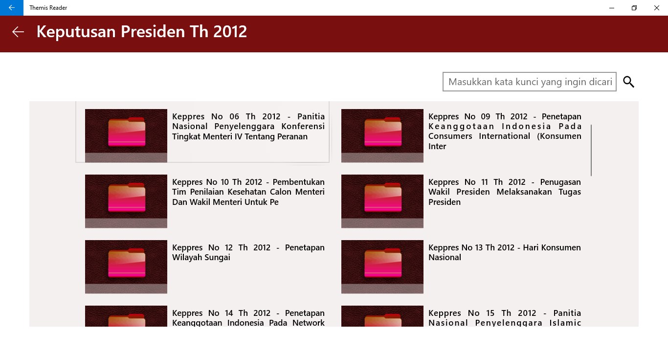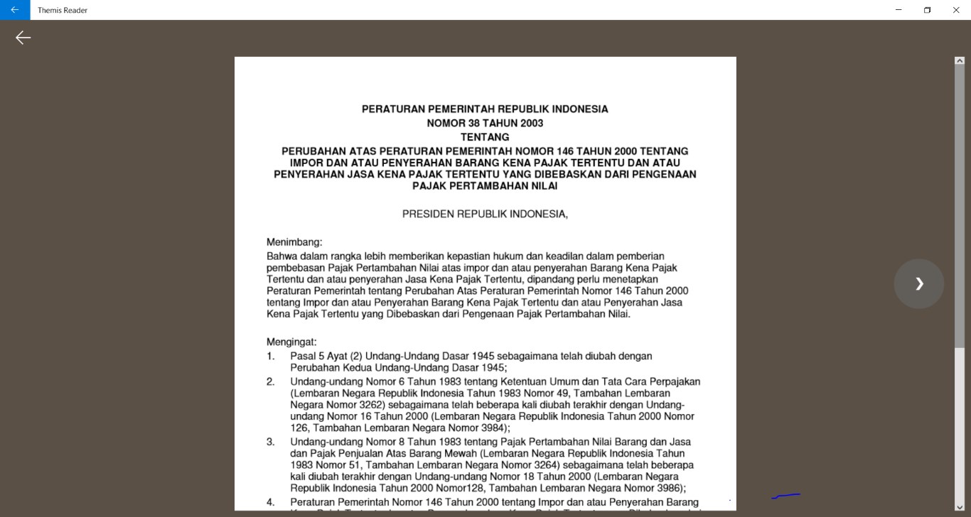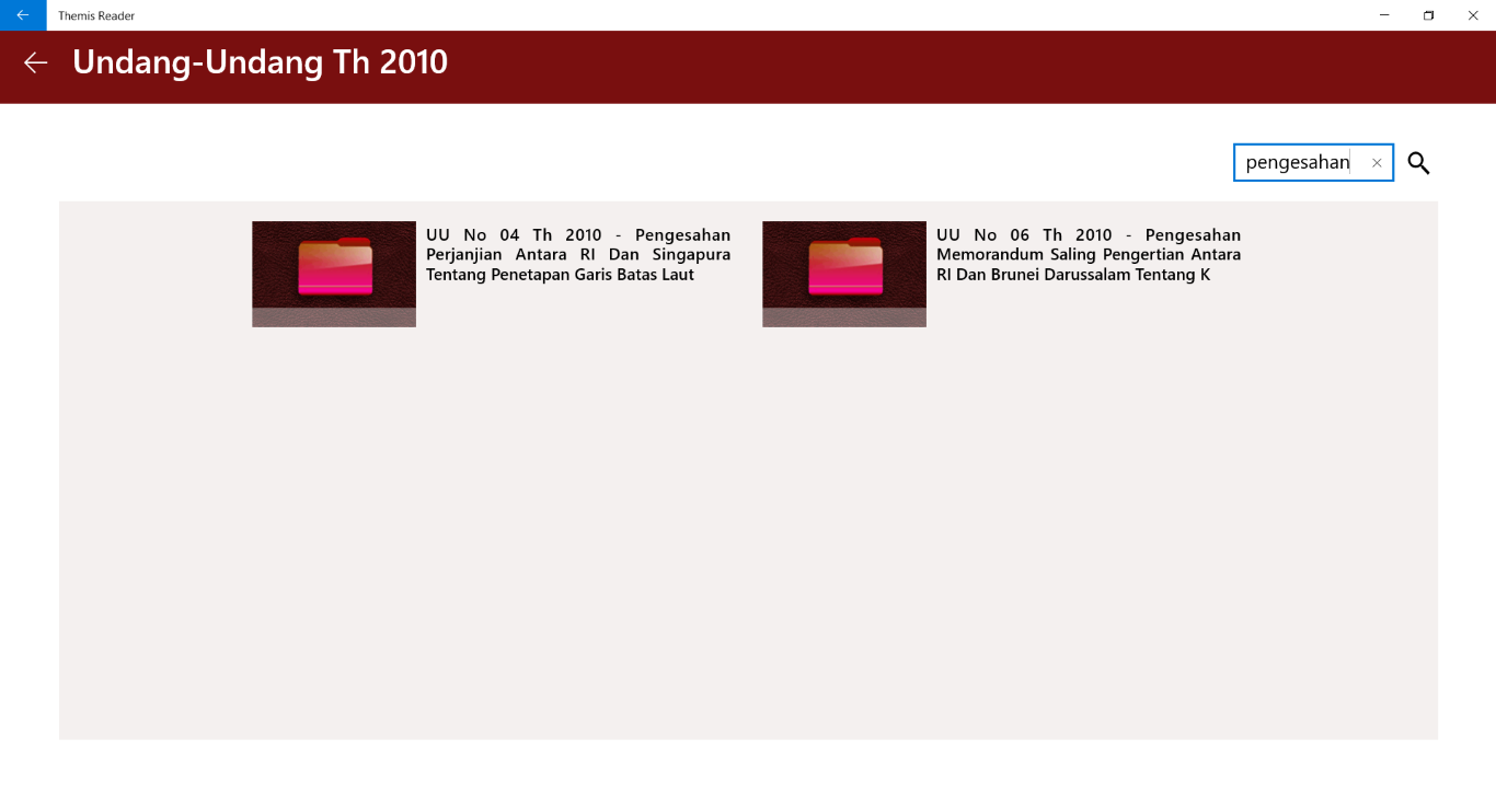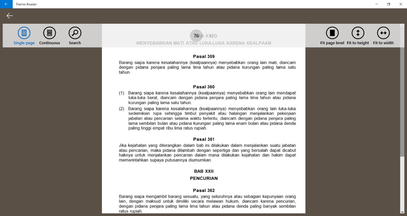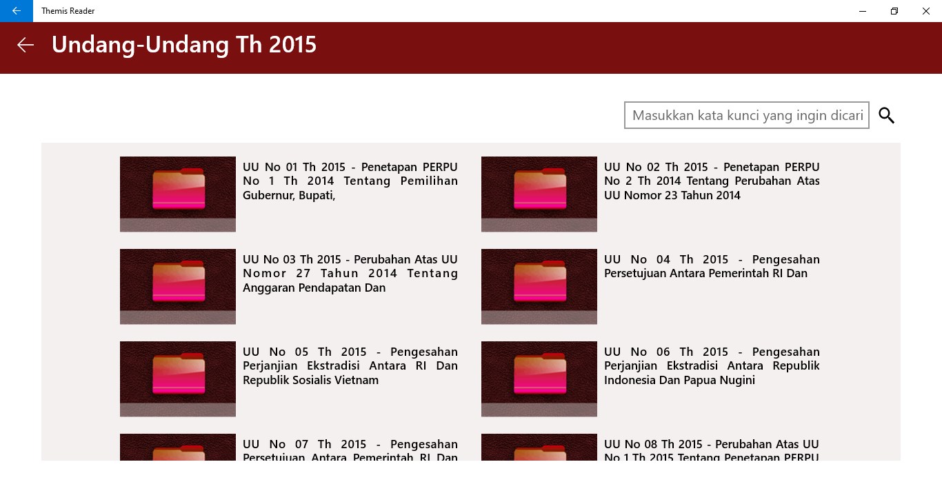 Download Themis Reader di Windows Store Sekarang! Membaca dan mempelajari Undang-Undang Indonesia kini begitu mudah, ringkas, terjangkau dan LENGKAP. Sekali download, tidak dibutuhkan jaringan Internet untuk membacanya.