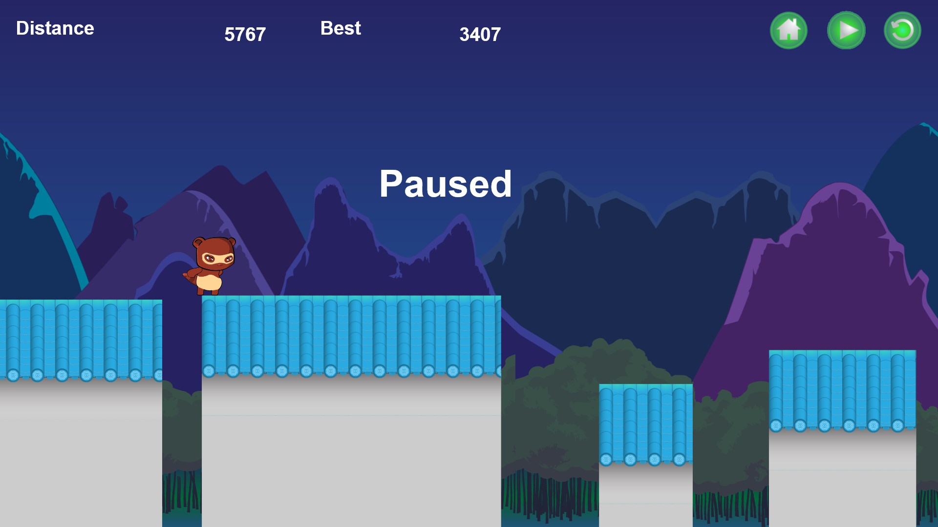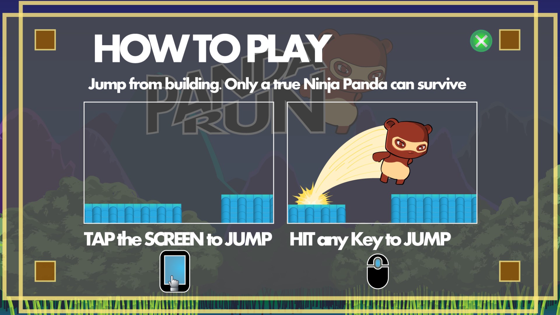 You are a ninja Panda running away after a night of performing your ninja duties. Run on the roofs of the houses and avoid falling to an untimely demise.