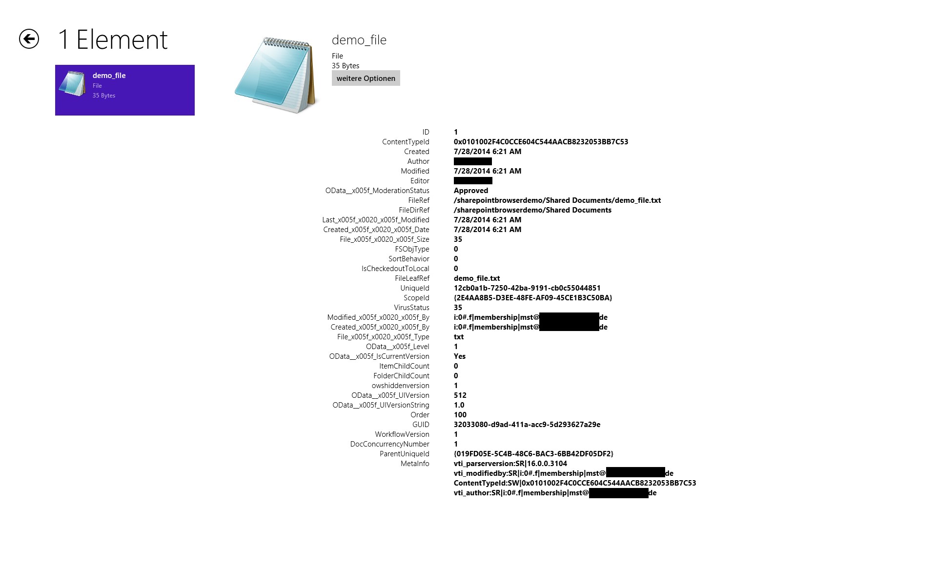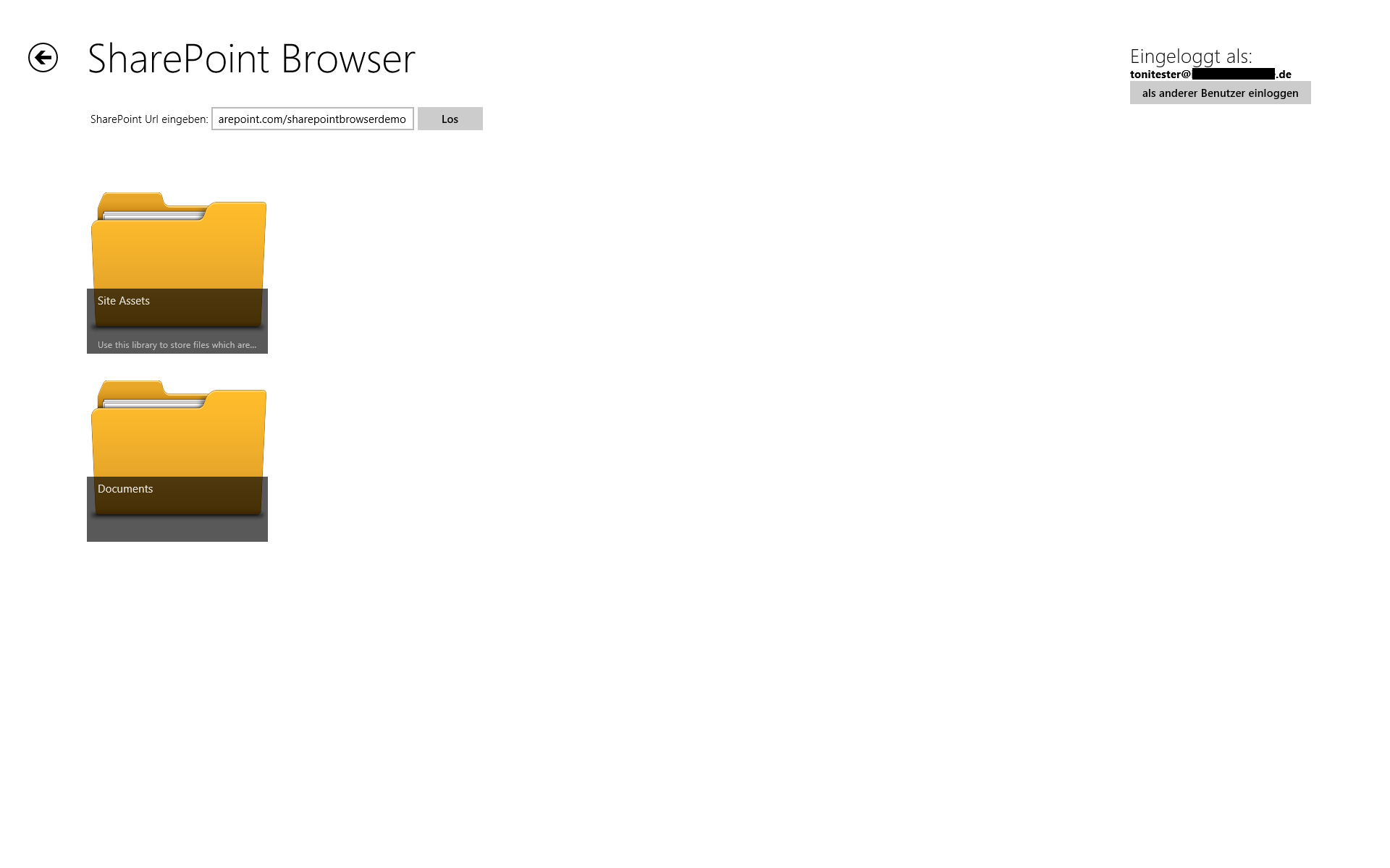 Die "SharePoint Browser"-App ermöglicht es Ihnen, die Verbindung zu einem SharePoint 2013-Server oder SharePoint Online herzustellen und die dortigen Dokumentenbibliotheken abzurufen und deren Inhalt anzuzeigen, sofern sie die Berechtigungen besitzen.