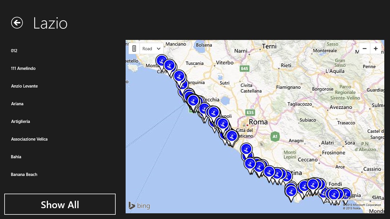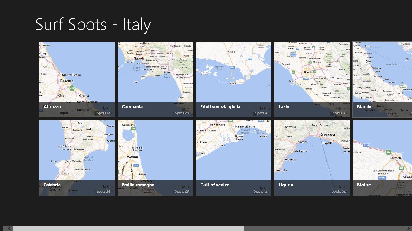 Thank Surf Spot - Italy, you can see the list of spots for the region, and view it on the map.