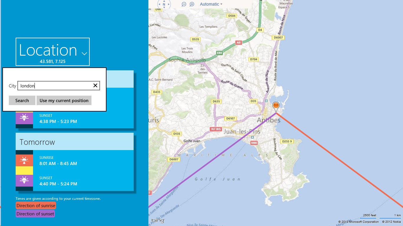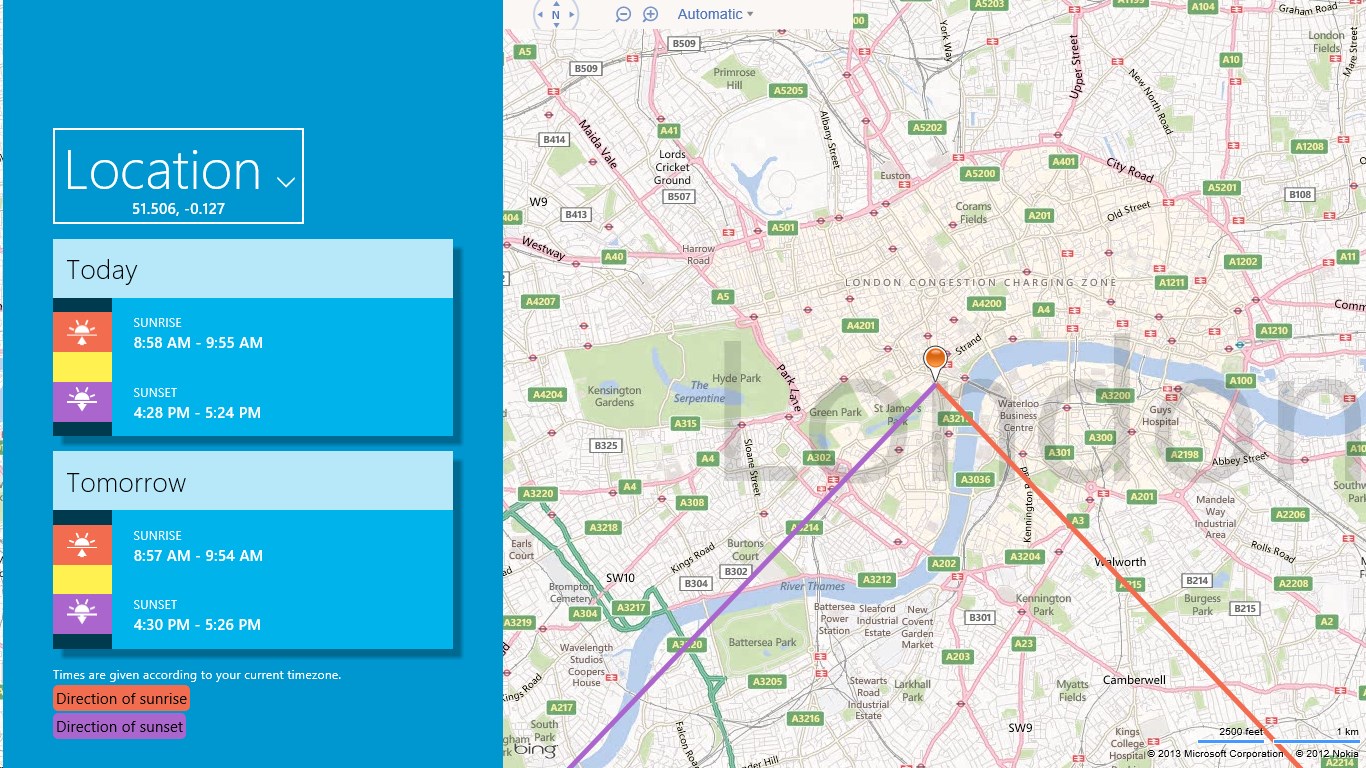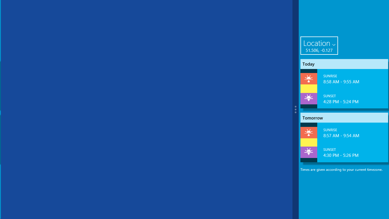 This application allows photographers to know when will the sunrise and the sunset be. It also gives the "golden hours", that is to say, the times of day when the light is best for photography.
