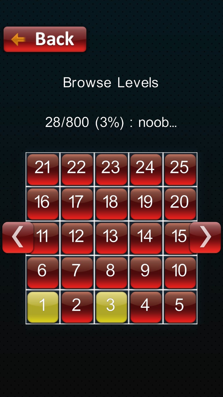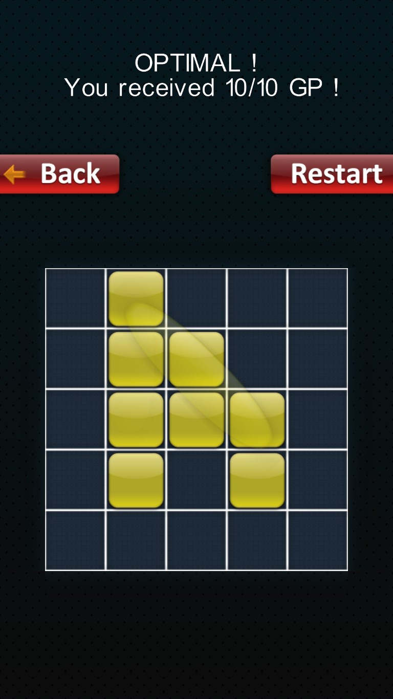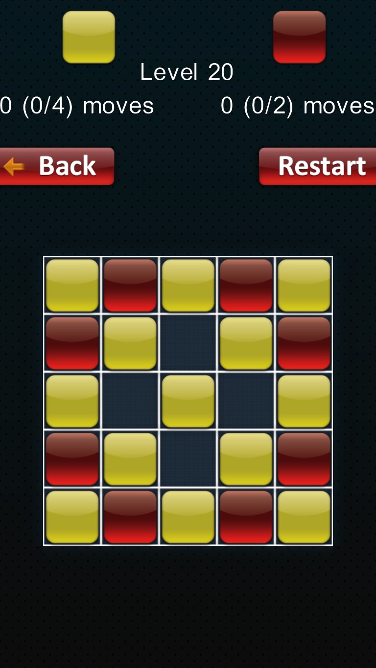 In Relative Puzzle you have to move blocks around and turn them all to yellow. How ? easy, place blocks on a line, be it horizontal, vertical or diagonally, and anything inbetween the first and last block will turn to the same color. The only catch is that you have to do it smart ! Try to do it with the least amount of yellow and red moves. The score depends on it.