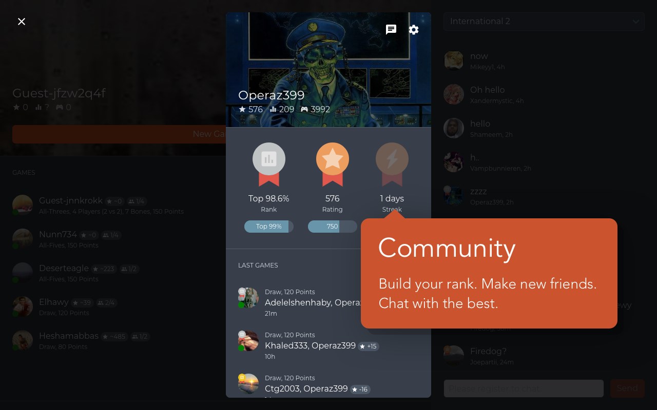 Play the most popular Dominoes styles: Muggins, Draw and Block.Challenge opponents online and make new friends.