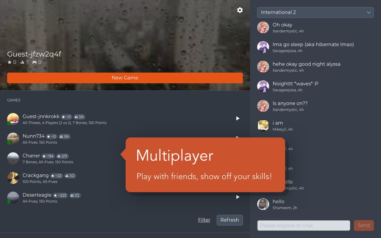 - Multiplayer: play Dominoes online with up to 3 friends.