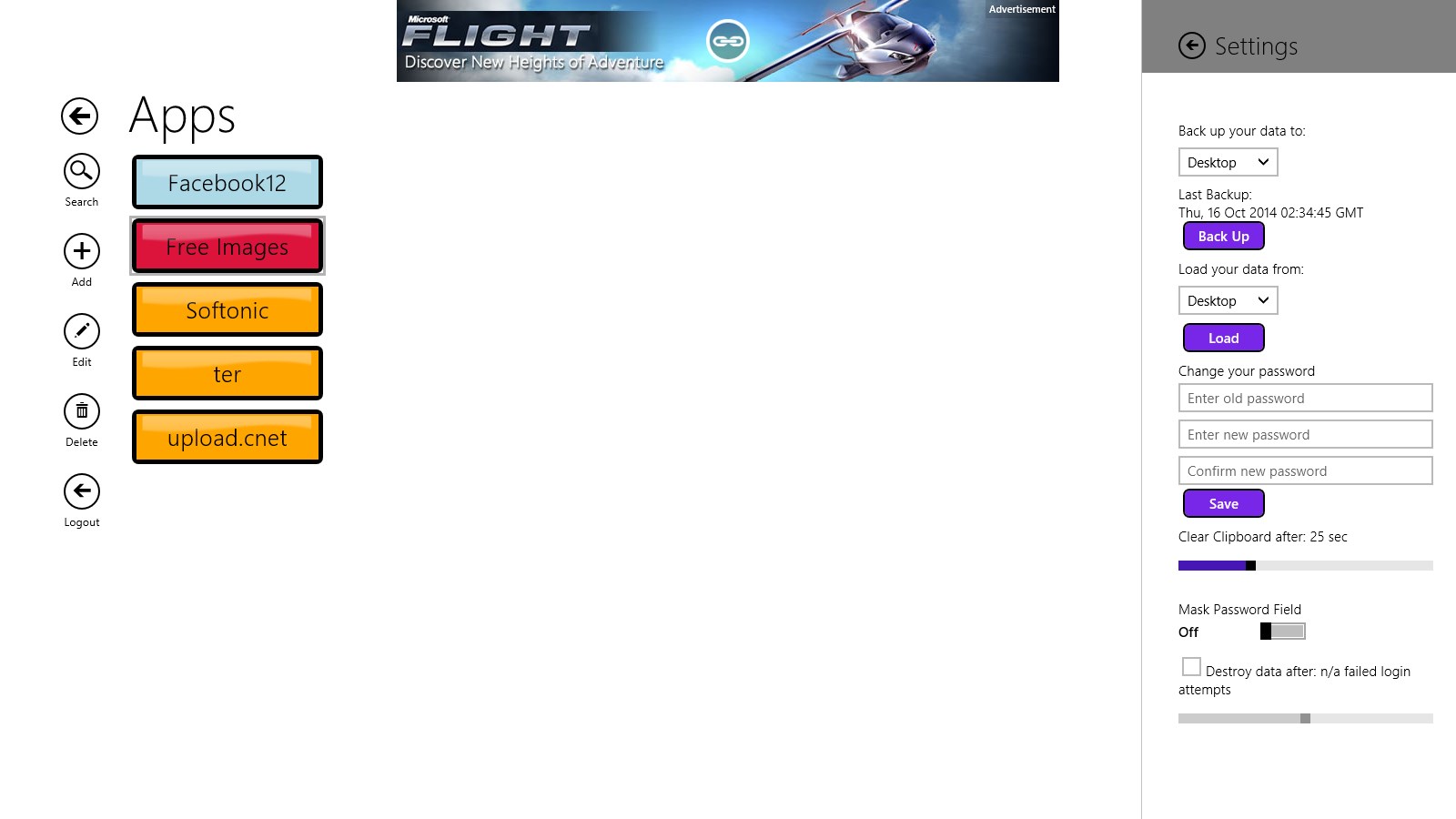 Search/filter, add, edit, delete accounts easilyBackup your data to the desktop or OneDrive for peace of mindChoose colors to help differentiate your groups and accountsTap on fields to instantly copy your information to the clipboardInformation is encrypted for security of your informationCreate custom fields for your accountsYou can generate a random password if you can\'t think of oneAdd pictures to an accountOption to destroy data after 5 failed login attemptsIncludes a timer to delete clipboard after copying your sensitive informationAdd as many accounts and groups as you please! There\'s no limit!