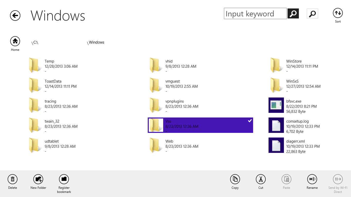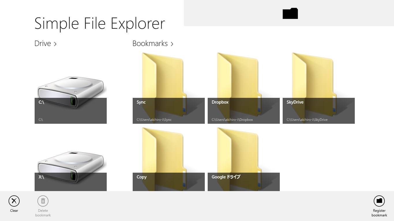 Simple File Explorer is designed for the touch panel operations on tablet. This app also can Transfer files by Wi-Fi Direct.