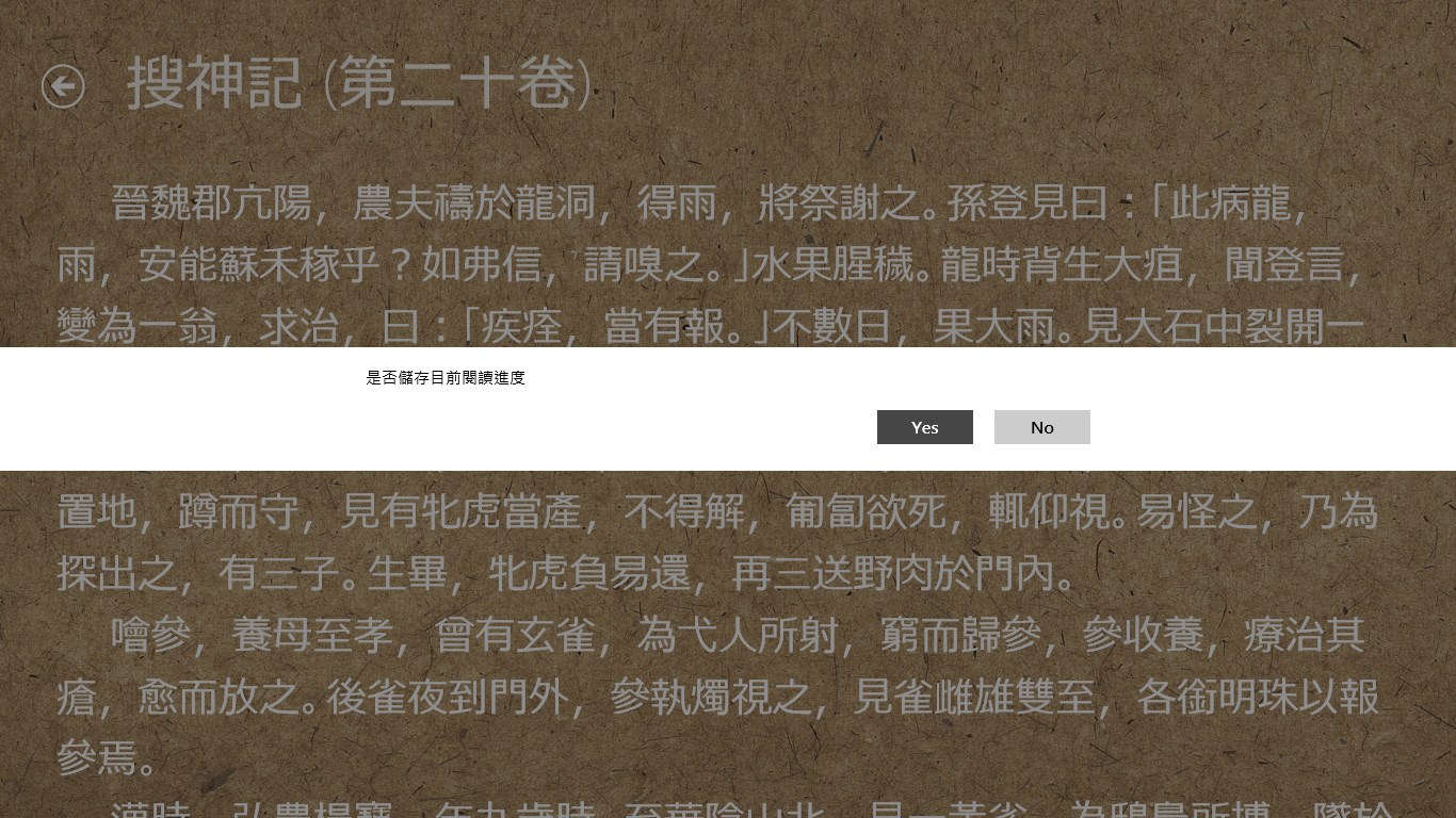 中國古典文學的搜神記小說電子版,方便隨時隨地進行閱讀,並可儲存與讀取閱讀的進度