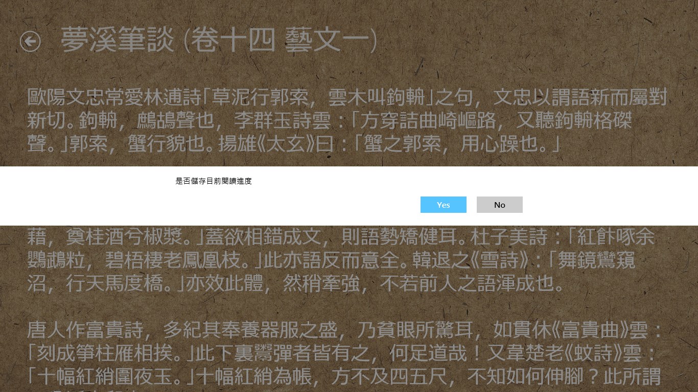 隨時隨地都可閱讀夢溪筆談儲存與讀取閱讀進度
