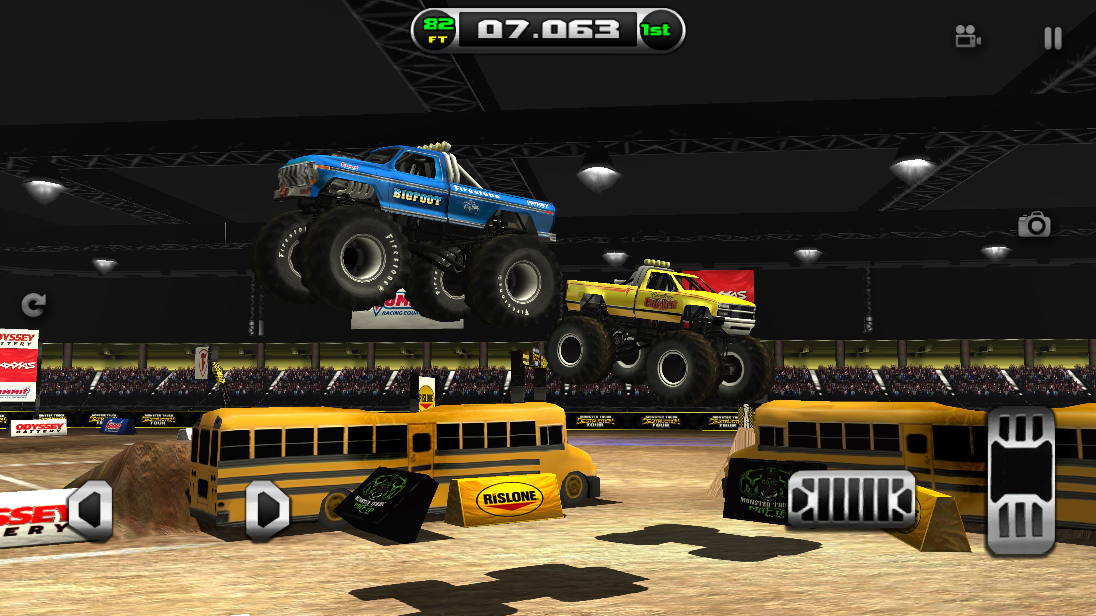 Drive over 60 licensed monster trucks such as BIGFOOT, USA-1, Boogey Van, Outback Thunda, Virginia Beast tanks, Traxxas RC trucks and upgrade your engine exhaust, intake, suspension and transmission to keep up with the competition.