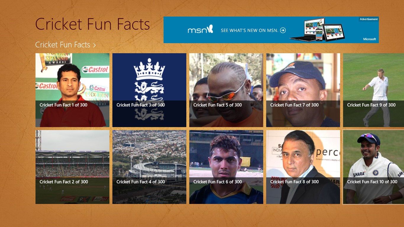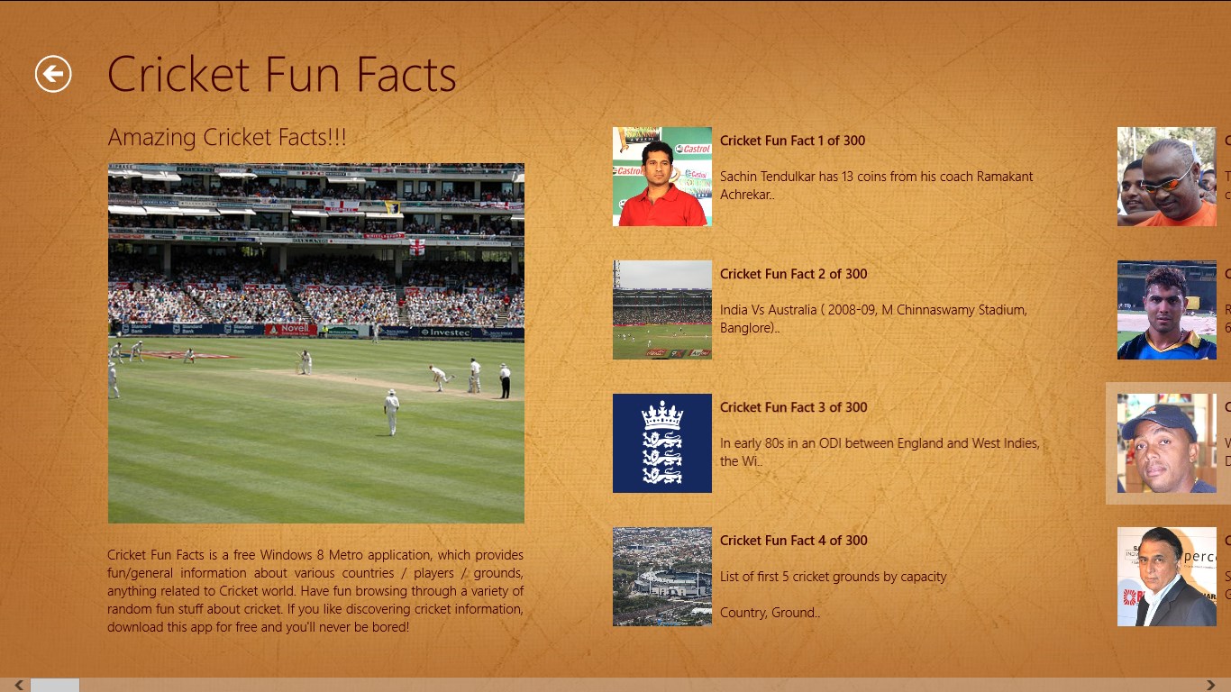 Amazing Cricket FactsSuitable for ALL AGES!Quality collection of amazingly unique 300 fun factsSwipe gestures to navigate through facts