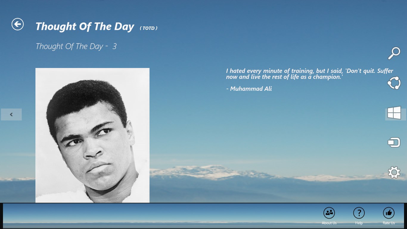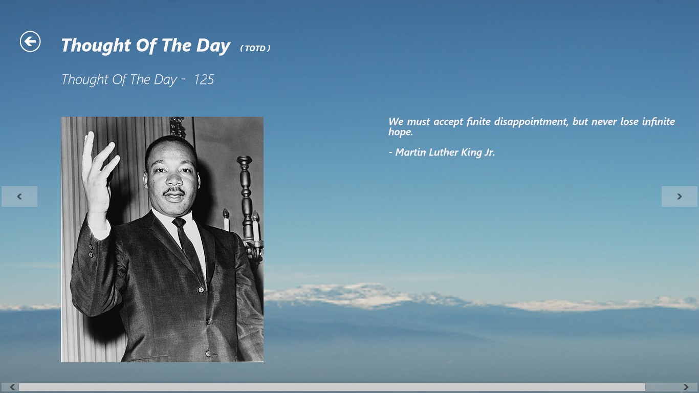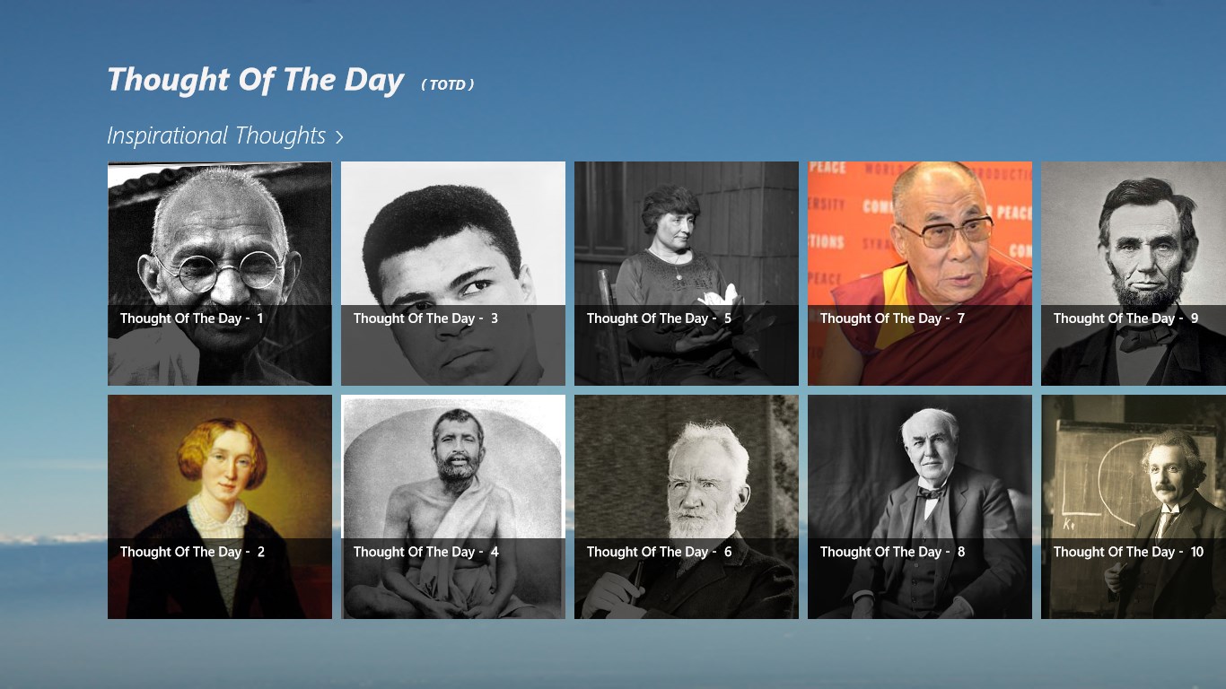 “Thought of the Day” is a free application, which provides amazing inspirational thoughts from scholars around the world, scholars belonging to absolutely different backgrounds (spiritual gurus, techies, philosophers, scientists, movie personalities, politicians, authors, sportsmen, musicians, businessmen, leaders, social workers and so on).