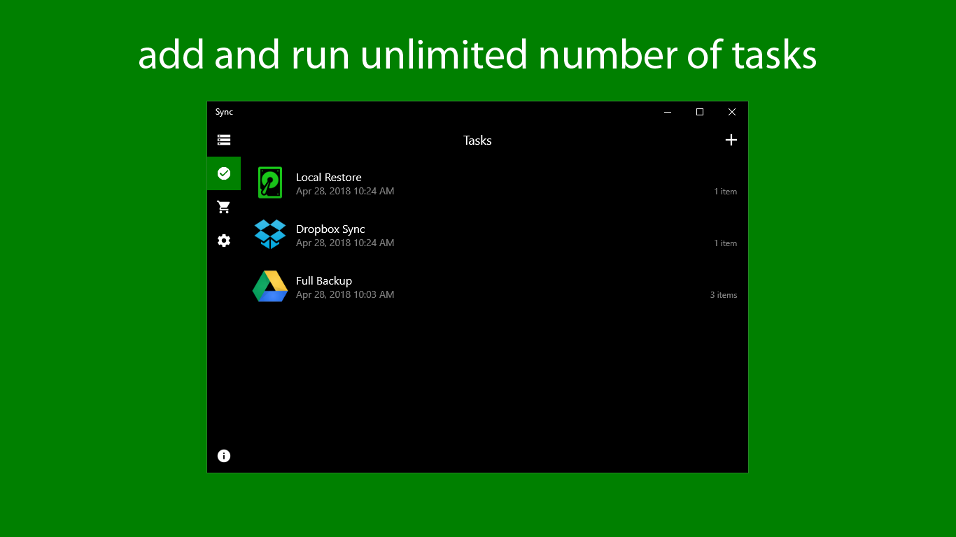 A 'task' is a collection of sources with a target drive, through which a sync, backup or restore operation can be performed.