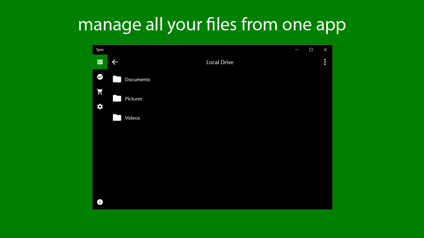 File sync between two folders or locationsFile backup to cloud storage, local or external driveFile restore from cloud storage, local or external driveFile manager for cloud storage and local drives