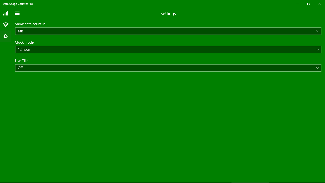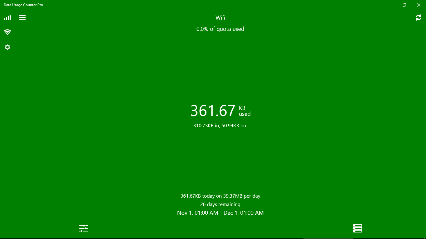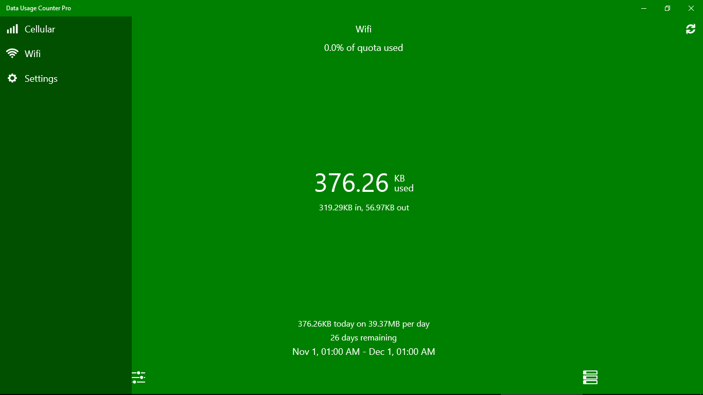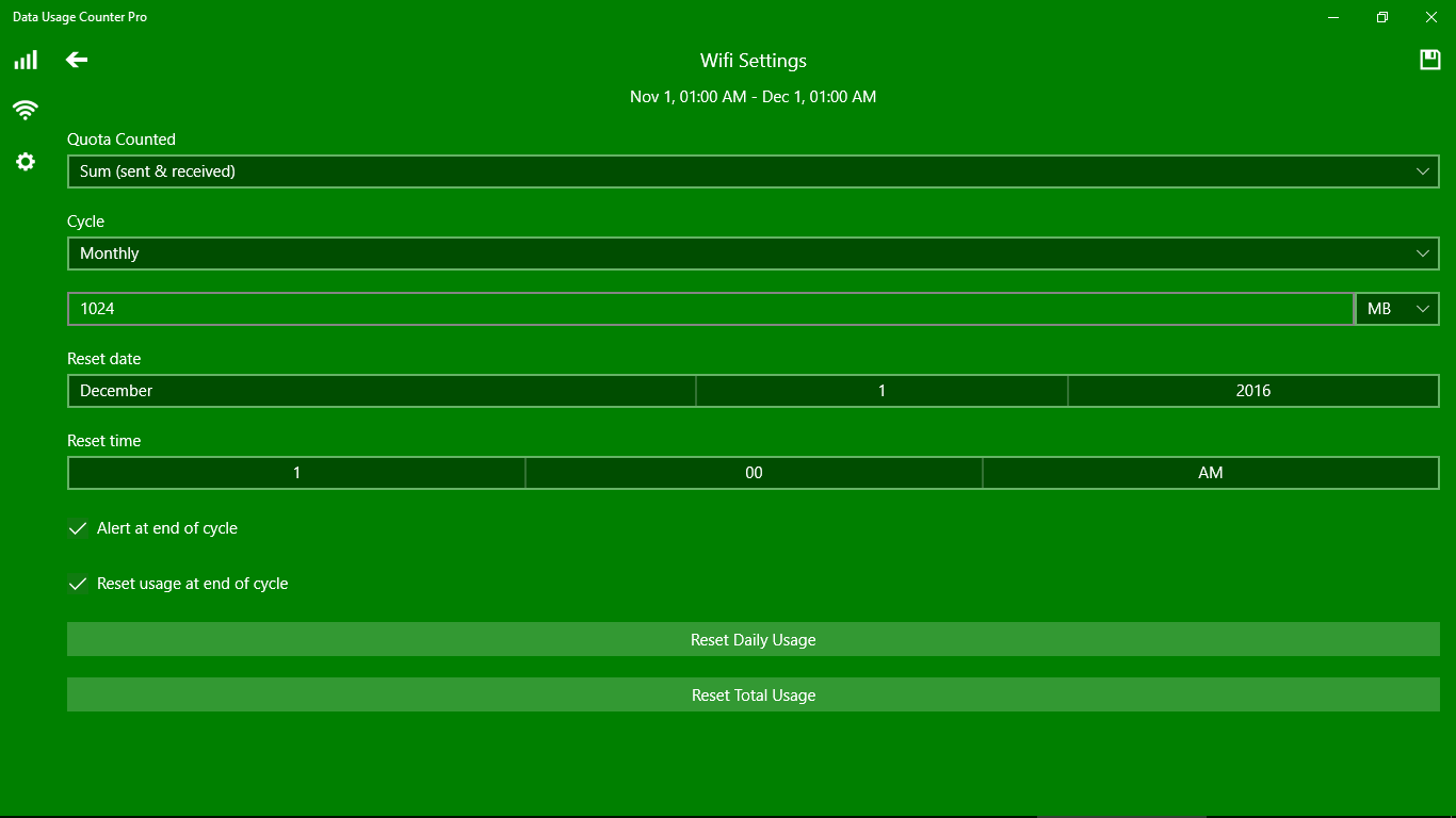 A native Window 10 Universal app for tracking your daily, weekly, monthly, unlimited and customizable data usage cycles for all network connections on your Windows 10 device.