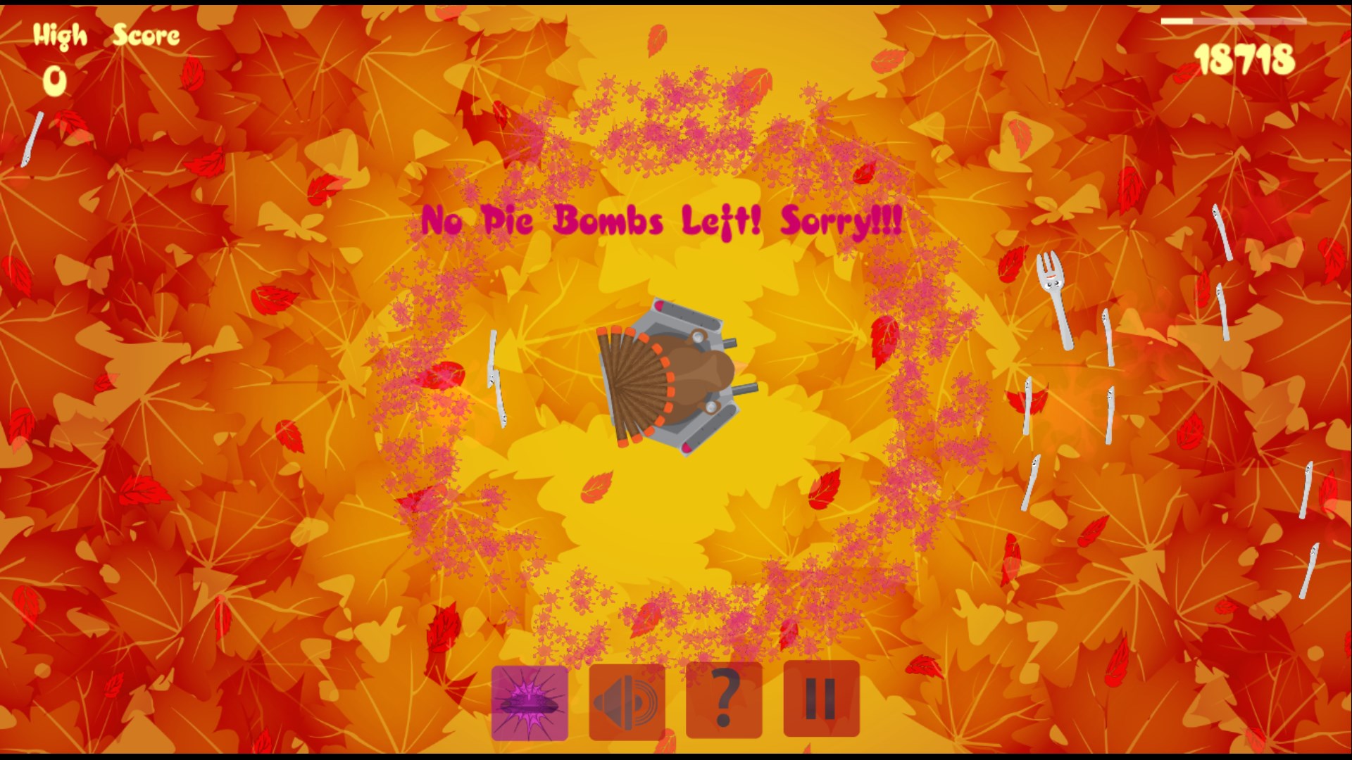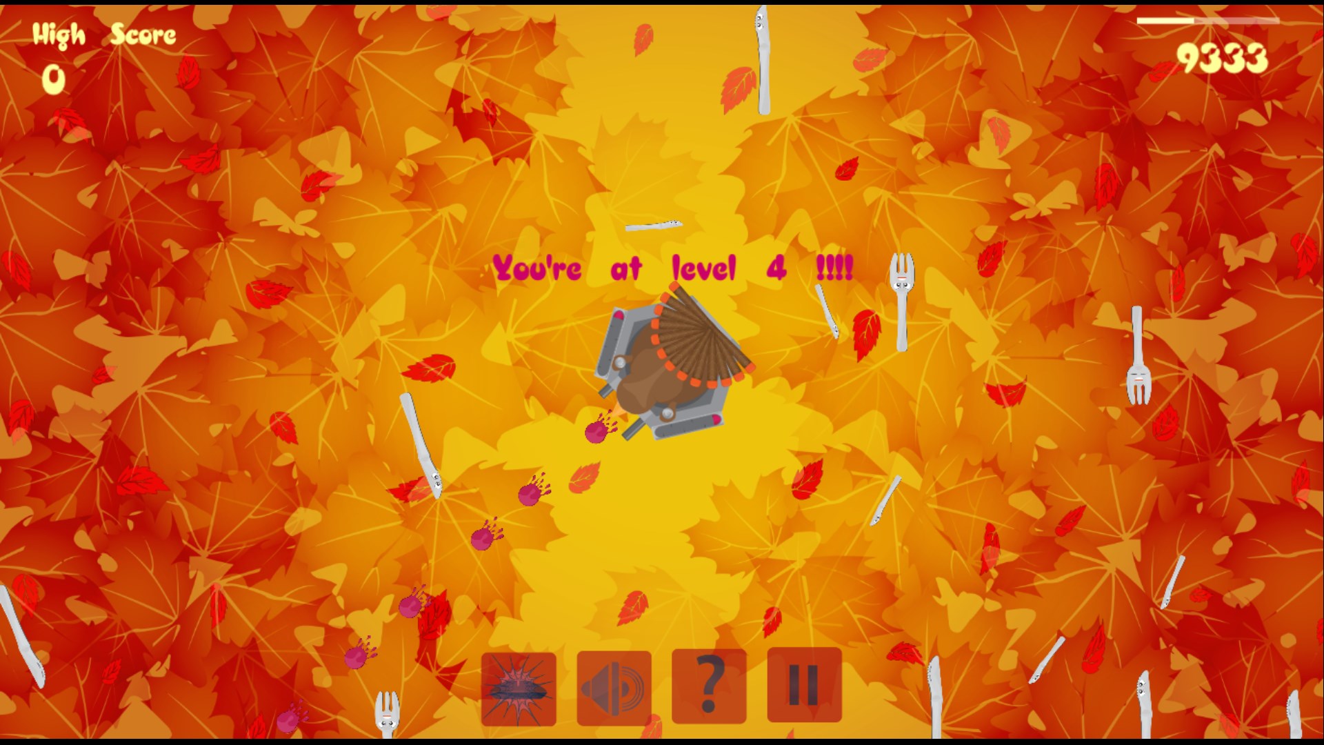 It is your last defense against the Fork and Knife! Help Turkey defend her post by shooting berry blasts at Fork and Knife! It is an all-out battle till the end. See if you can berry blast your way free of those crazy utensils. Simple point and shoot.