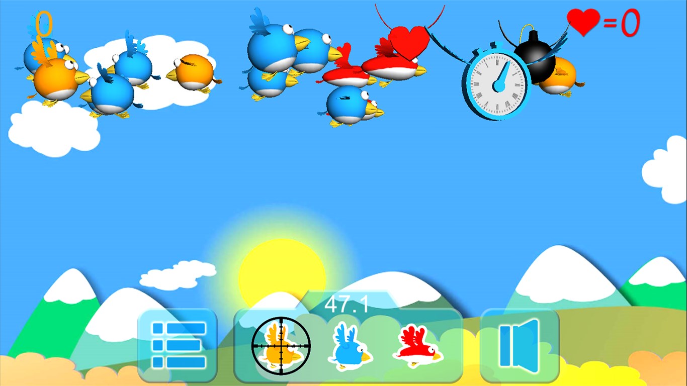 If you miss the bird you lose the time, if you hit the bird but you chose another bird, bird will attack you and you lose the life.