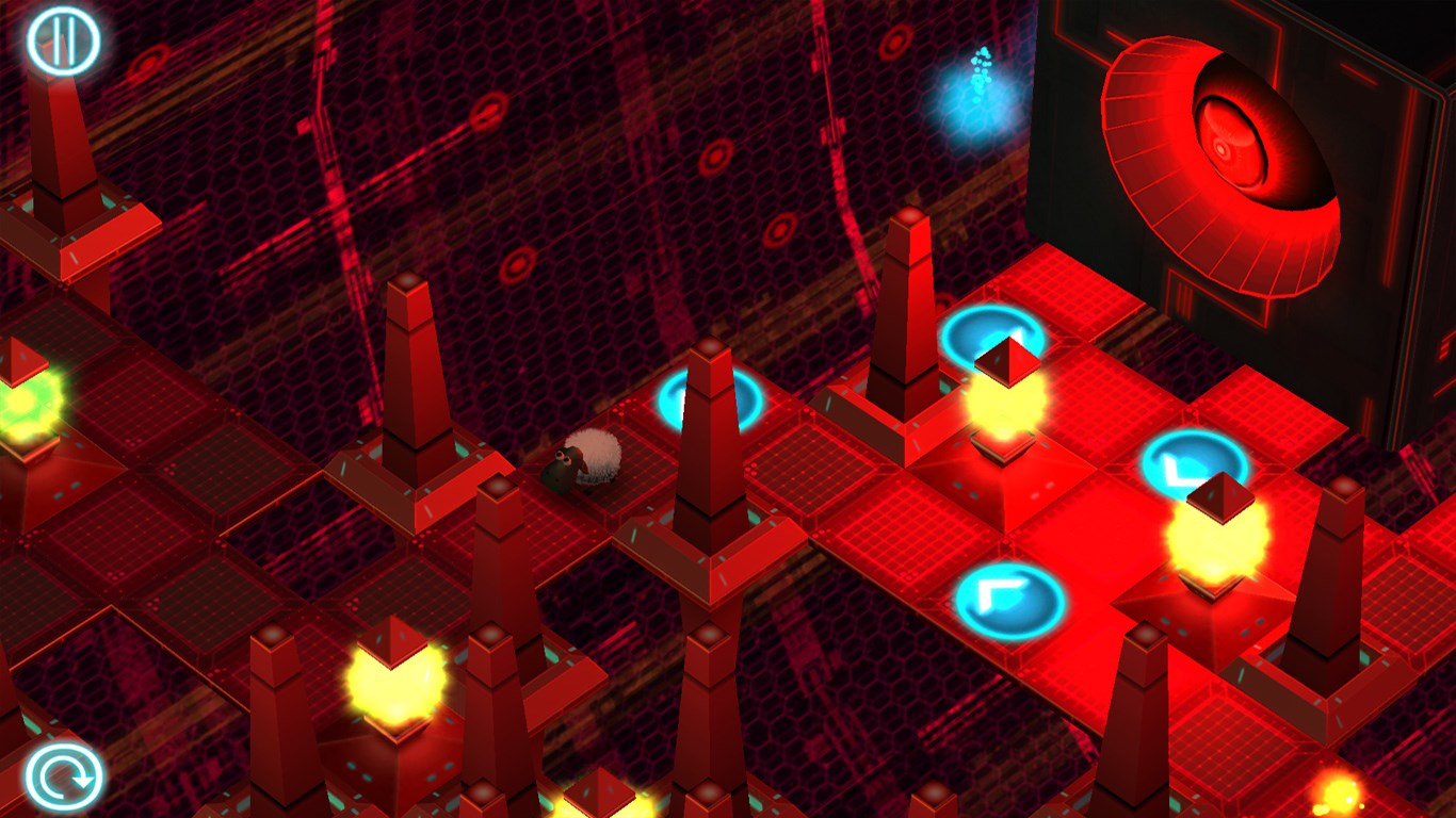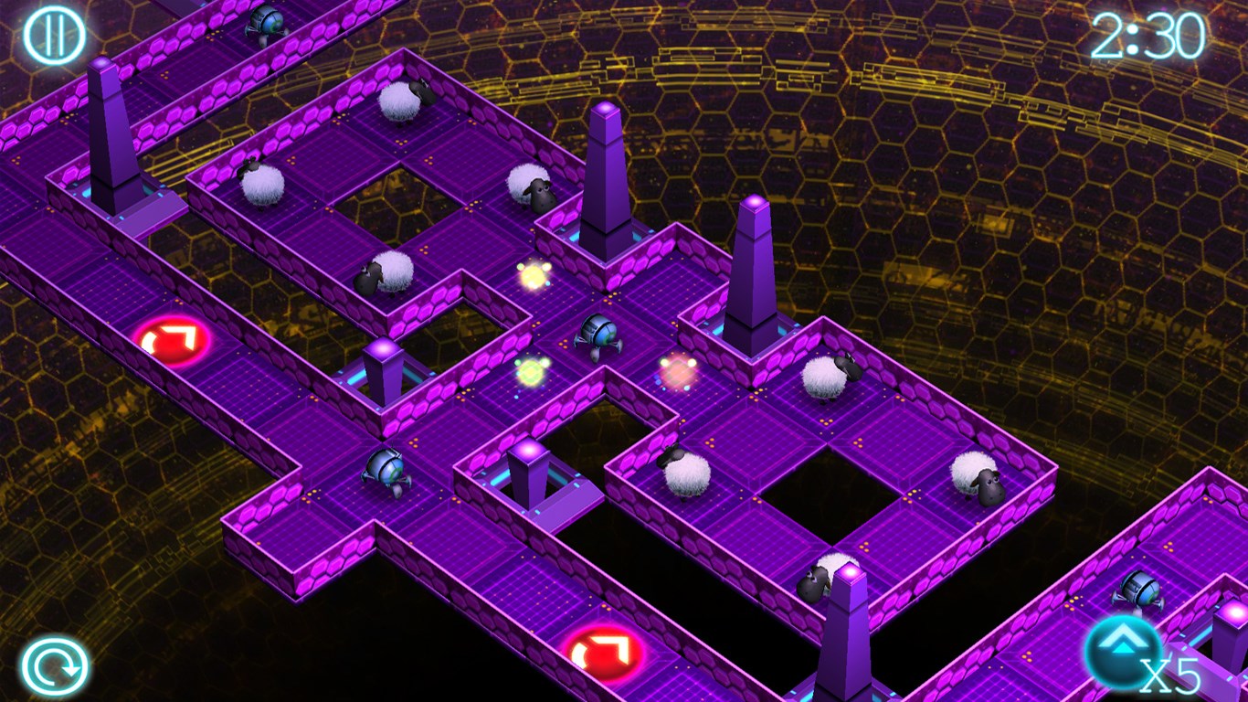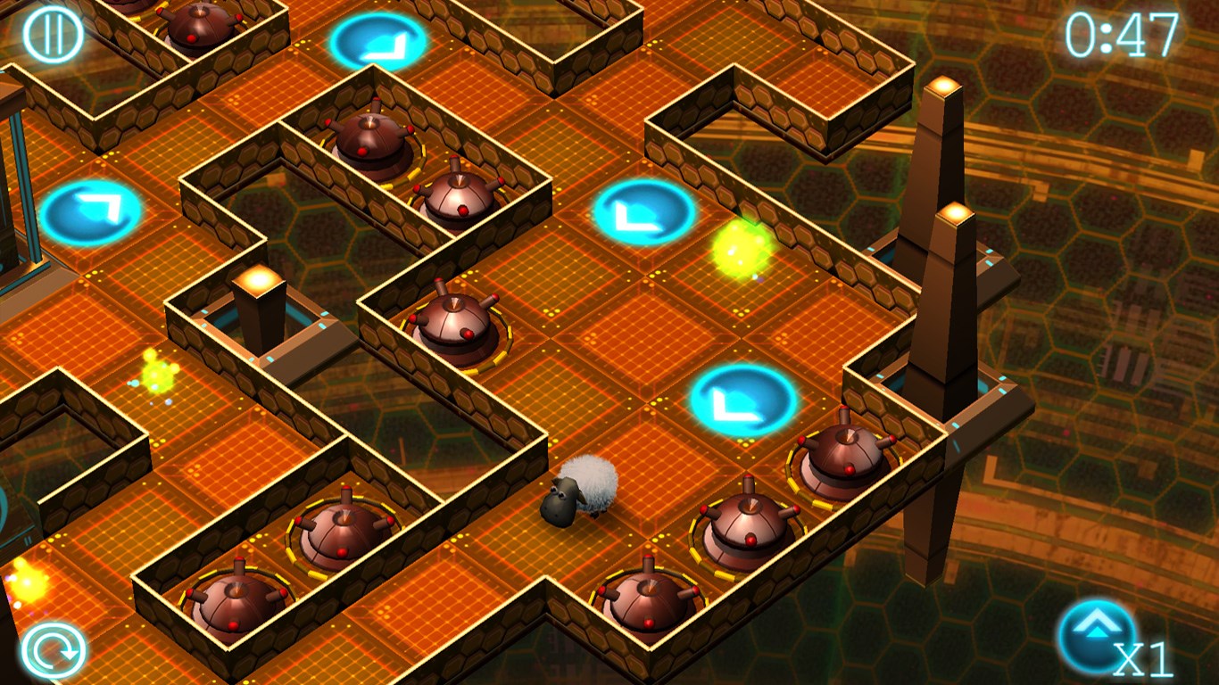 In this game, you will need to help sheep escape from an alien ship that abducts farm animals for some mysterious purpose. You will have to guide the sheep through many obstacles using movable arrows. Sheep are not particularly smart by nature, so they will really need such help. Only you can help them find an exit from the alien spacecraft and escape. The escape part will be especially hard. The aliens will use all of their tricks and technologies to stop the prisoners from running freely across the ship. You will have over 60 levels that will require logic, agility, speed and concentration to complete.