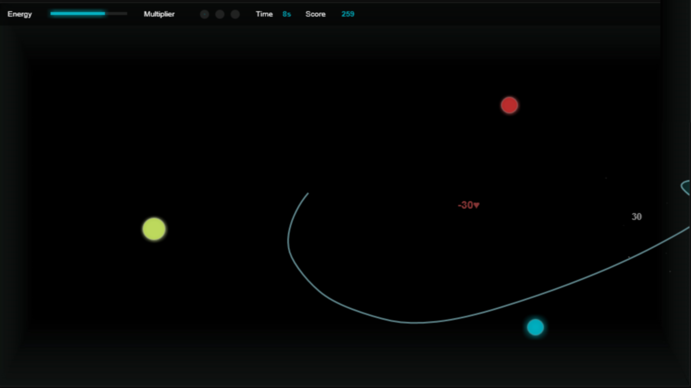 Destroy the orbs by enclosing them with your coil lasso! Challenge your friends for a high score. Get as many green and yellow orbs as you can and be careful to avoid the red ones! This game is easy to learn, easy to play, but hard to master. Good luck!