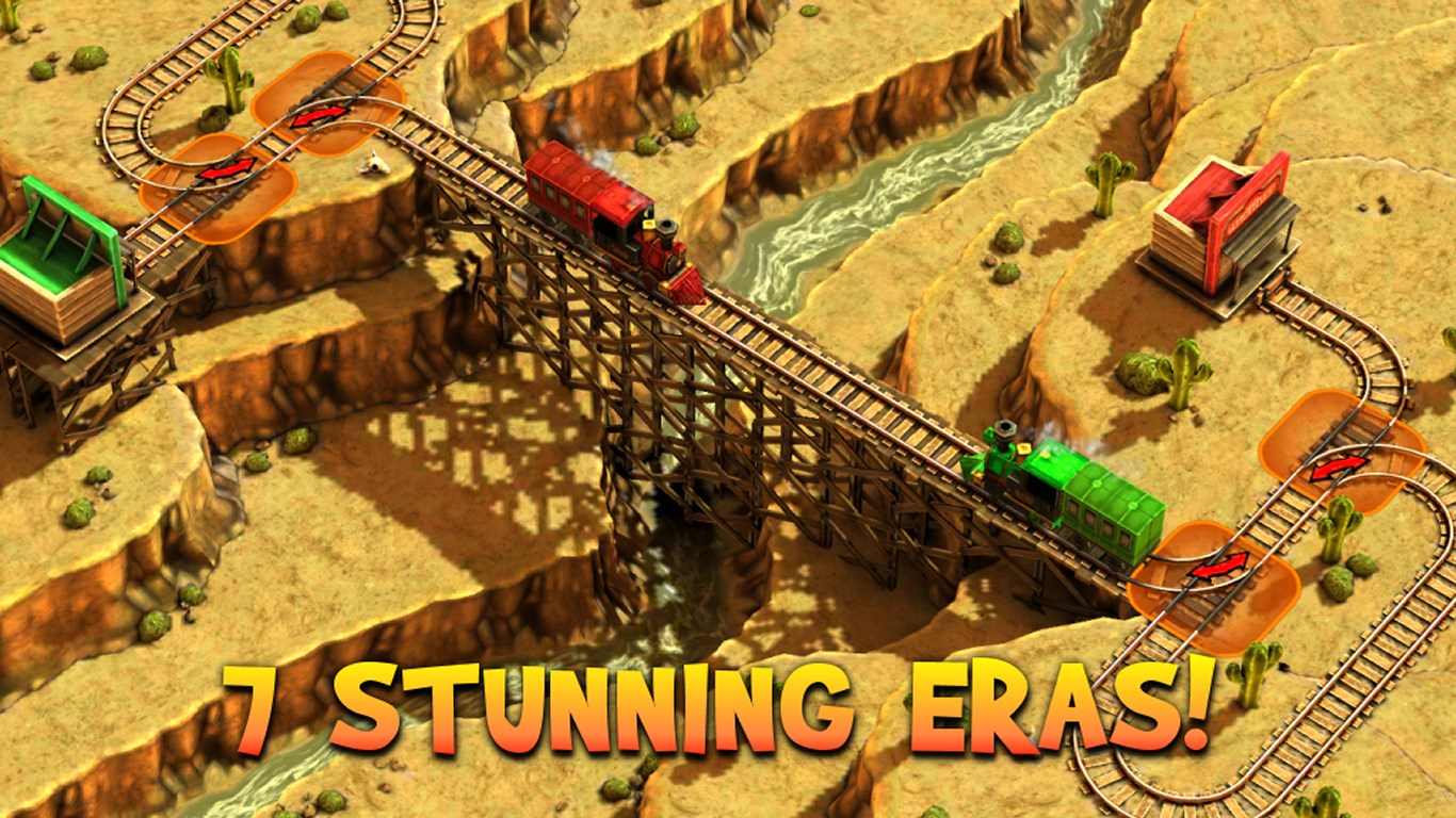 7 Eras of rail-road history (Industrial Era, Far West Era, Modern Era and Future Era).Spectacular High-definition 3D environments that recreate perfectly the three eras with many details as vegetation, animals, mountains, rocks, tunnels, banks, portals, etc.Train Crisis provides 168 challenging levels for players to conquer.You must interact with several elements to get past the level: changing junctions; timed traffic lights; trap tunnels; transportation of money; ghost trains and parts of the track obstructed with rockSpectacular colorful graphics effects with explosions of trains and rocks