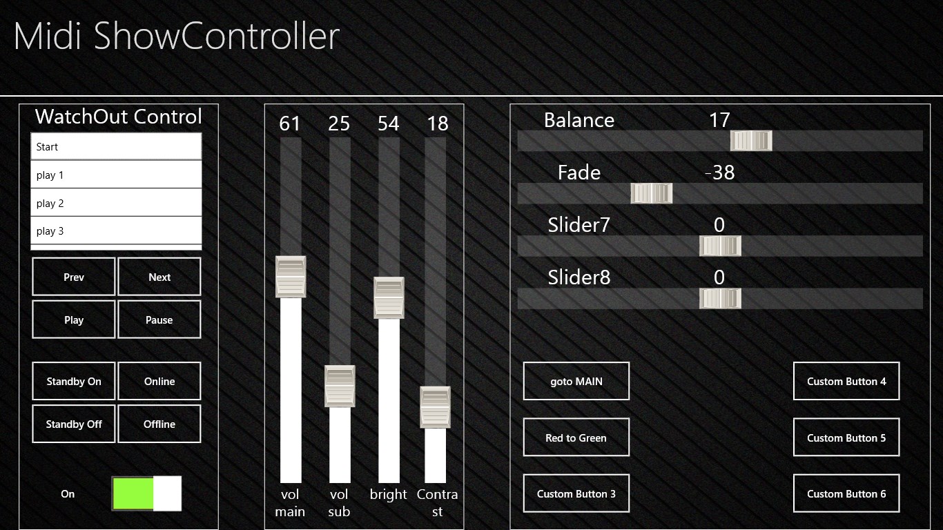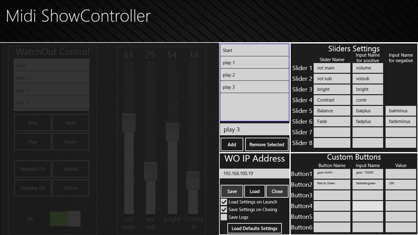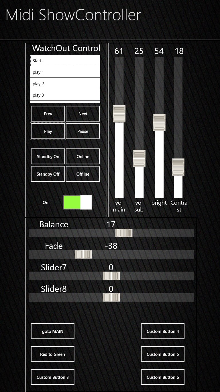 Midi ShowController is generic udp midi controller which allows control production WatchOut computer