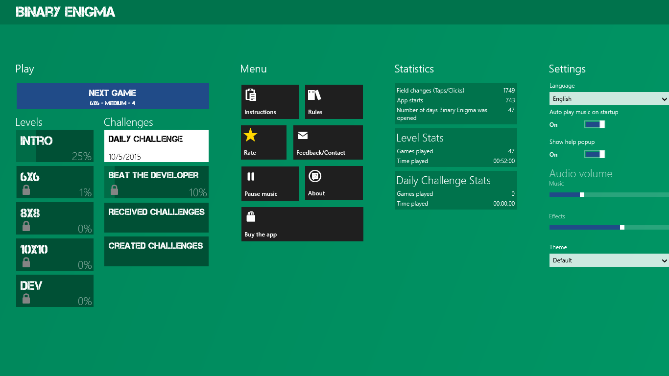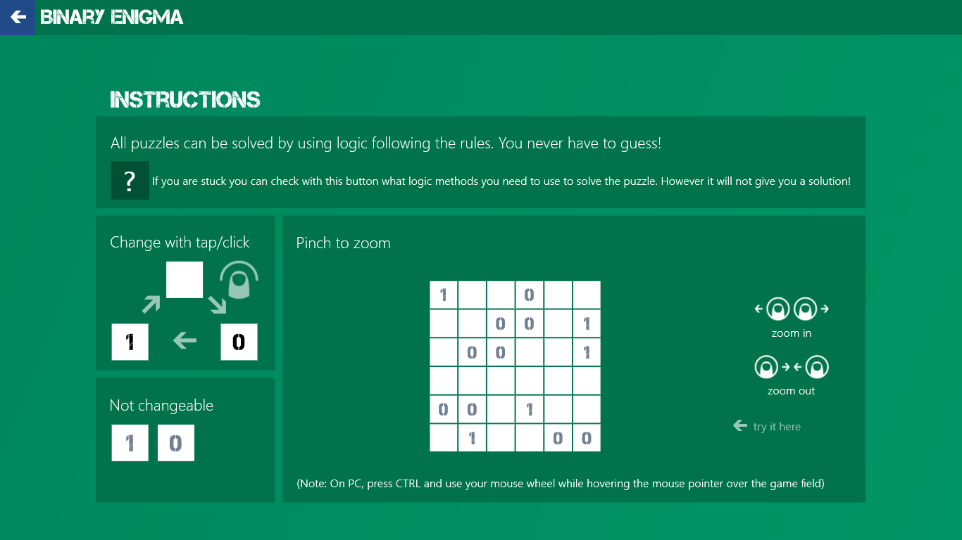 Binary Enigma features over a 1000 challenging logic puzzles! Can you solve them all?