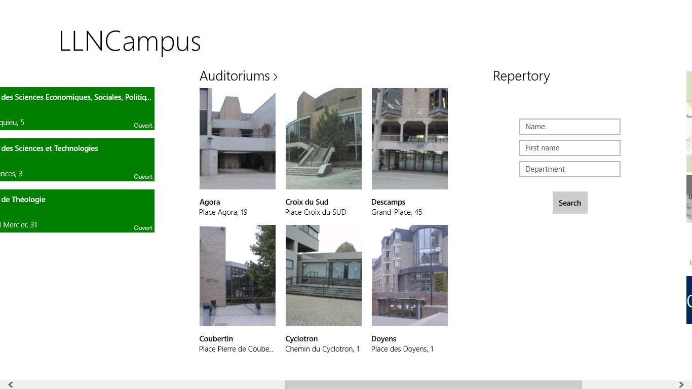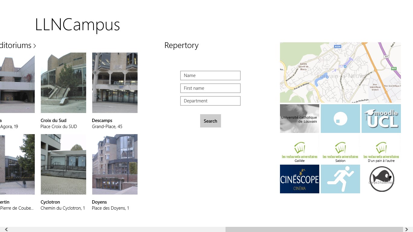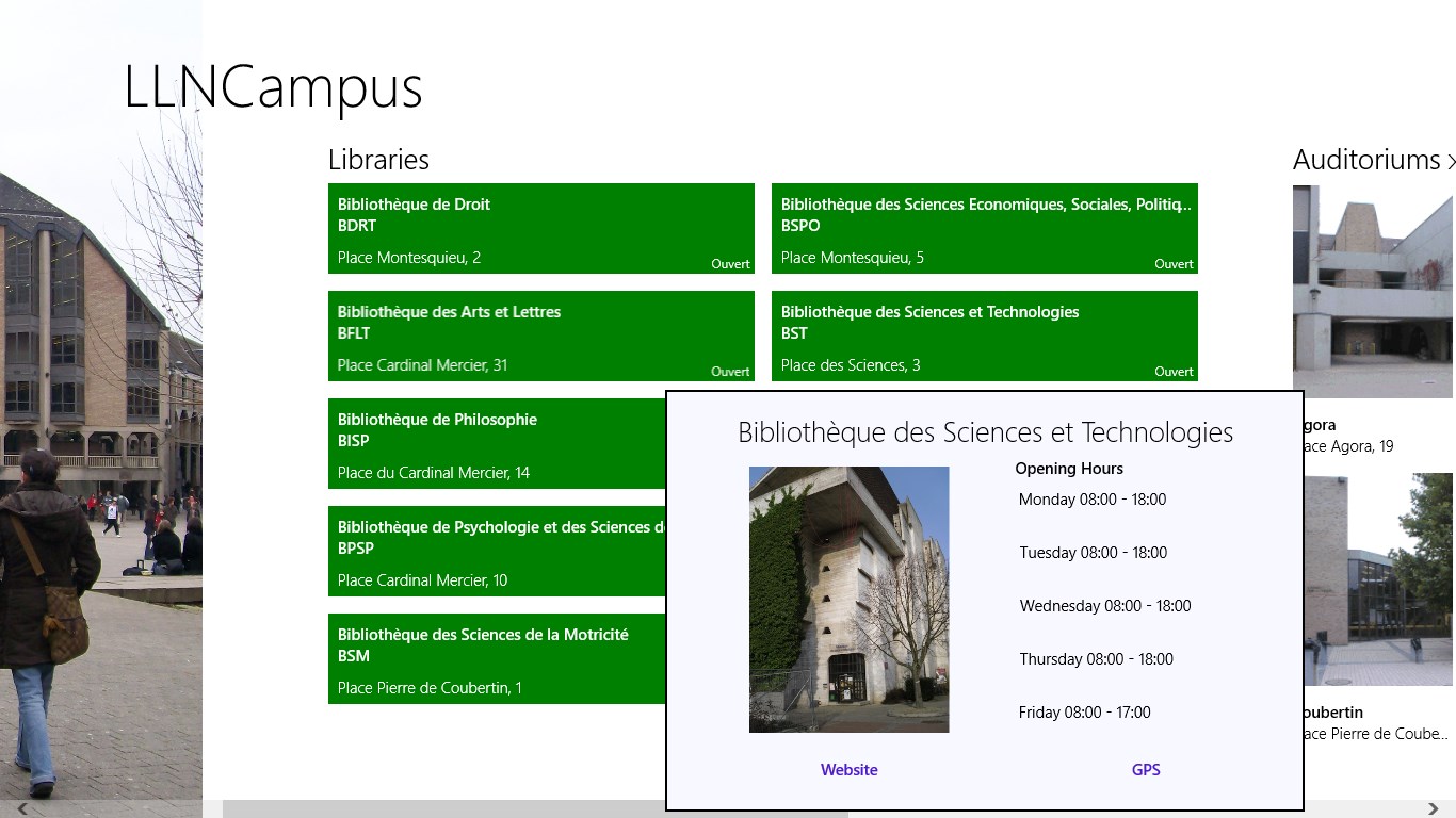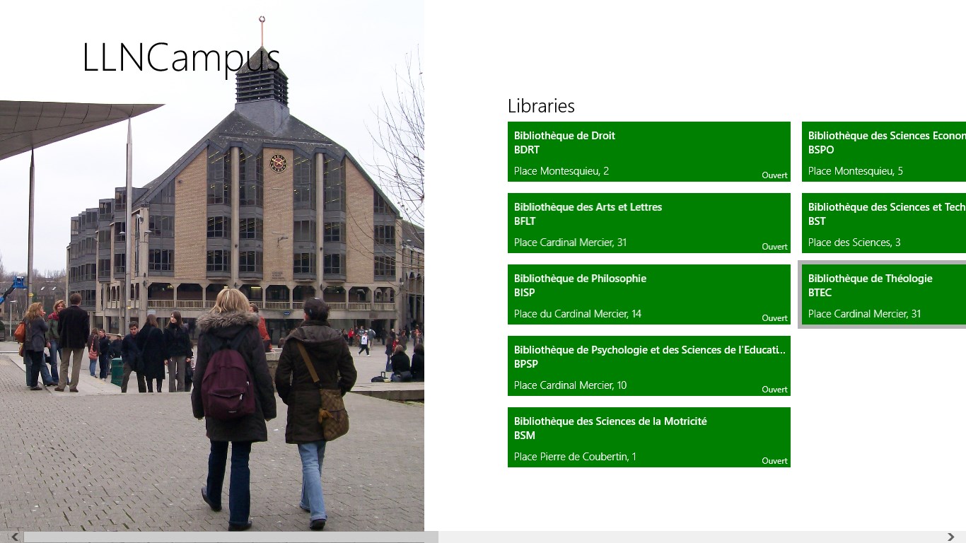 This app gives information about the Campus of Université catholique de Louvain in Belgium.