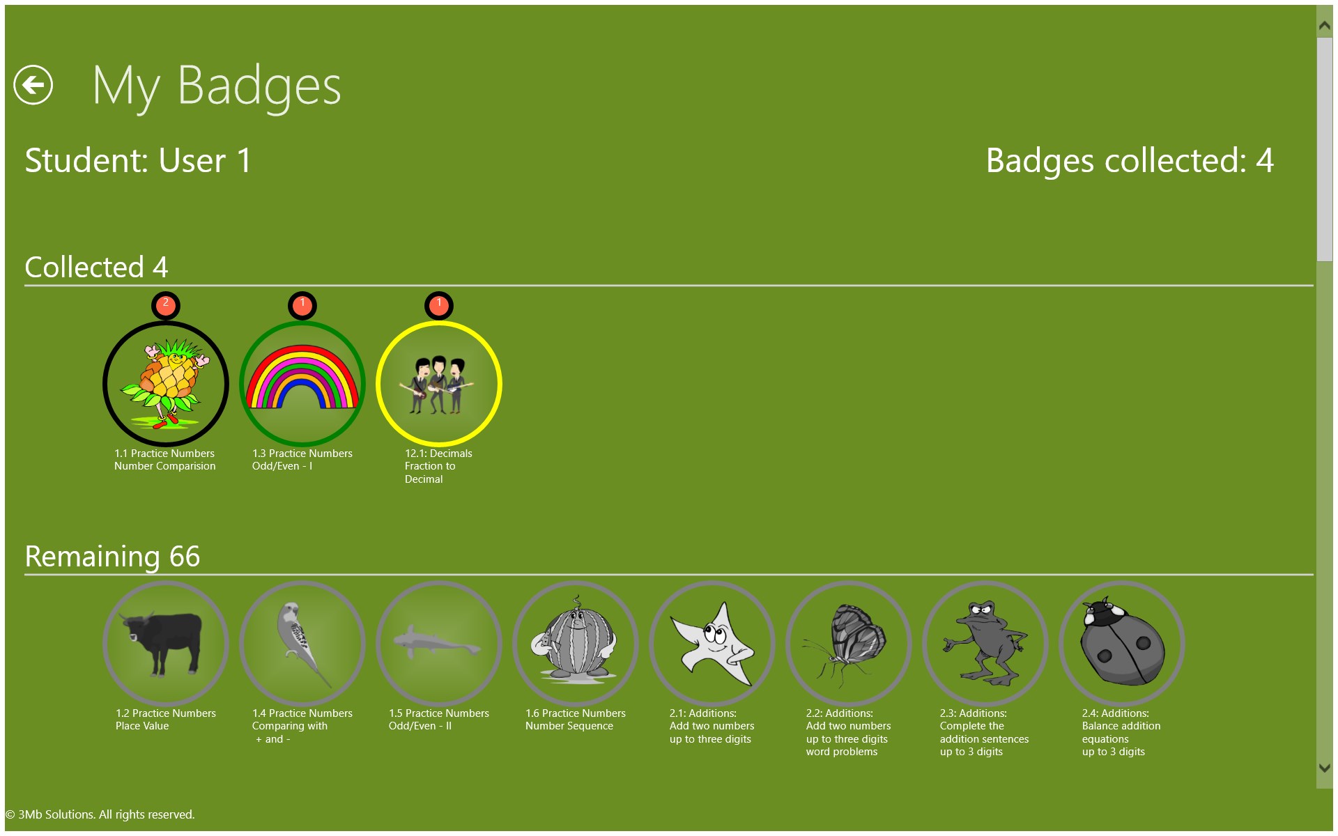 If a Test quiz is 100% correct, a badge is awarded.