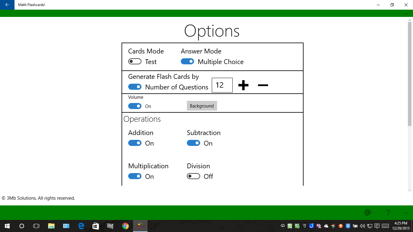 * Answer Mode: Multiple Choice/Keyboard.