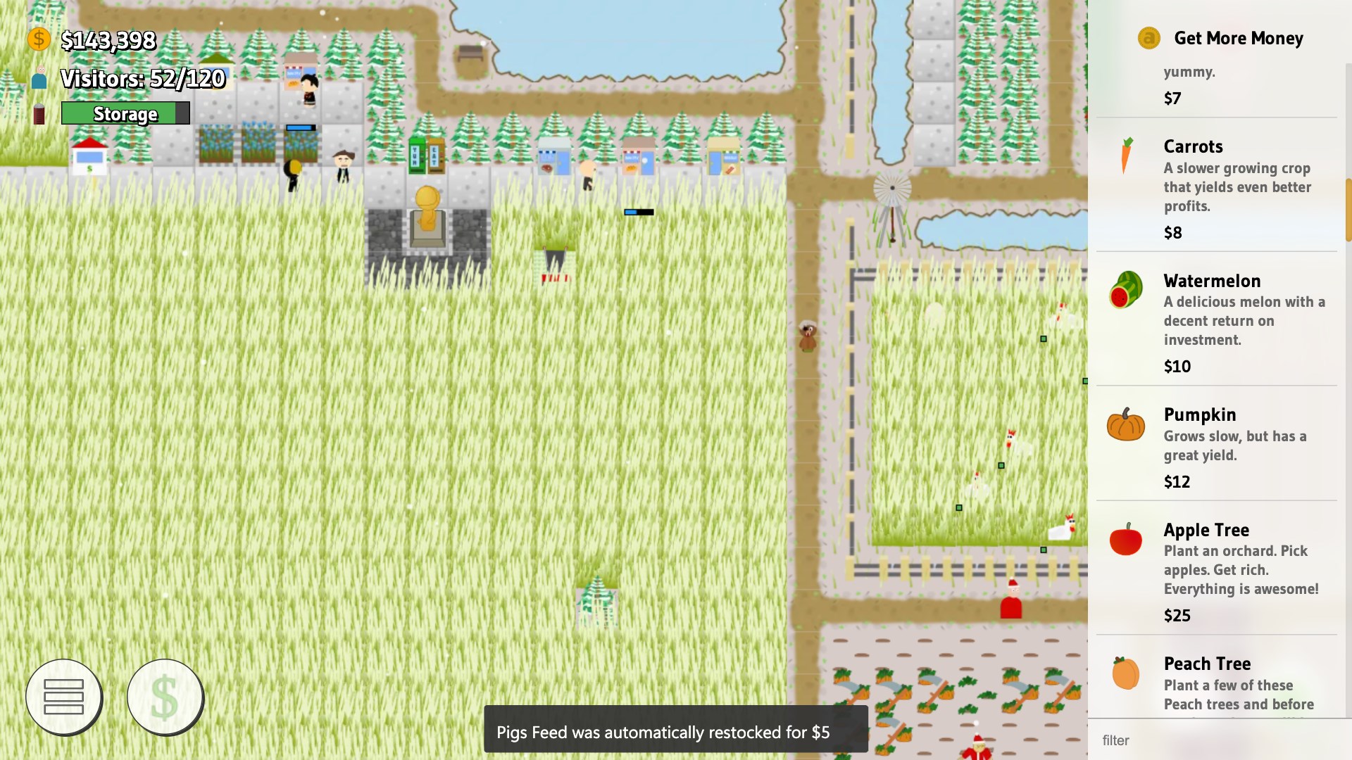 In My Land, you may take up several avenues of revenue generation. You can do farming, business, or run a nature trail system. The farm is where the easiest money is to be made. There are no real rules to the simulation, so you can basically do anything you want to. Feel free to explore all that the game has to offer!