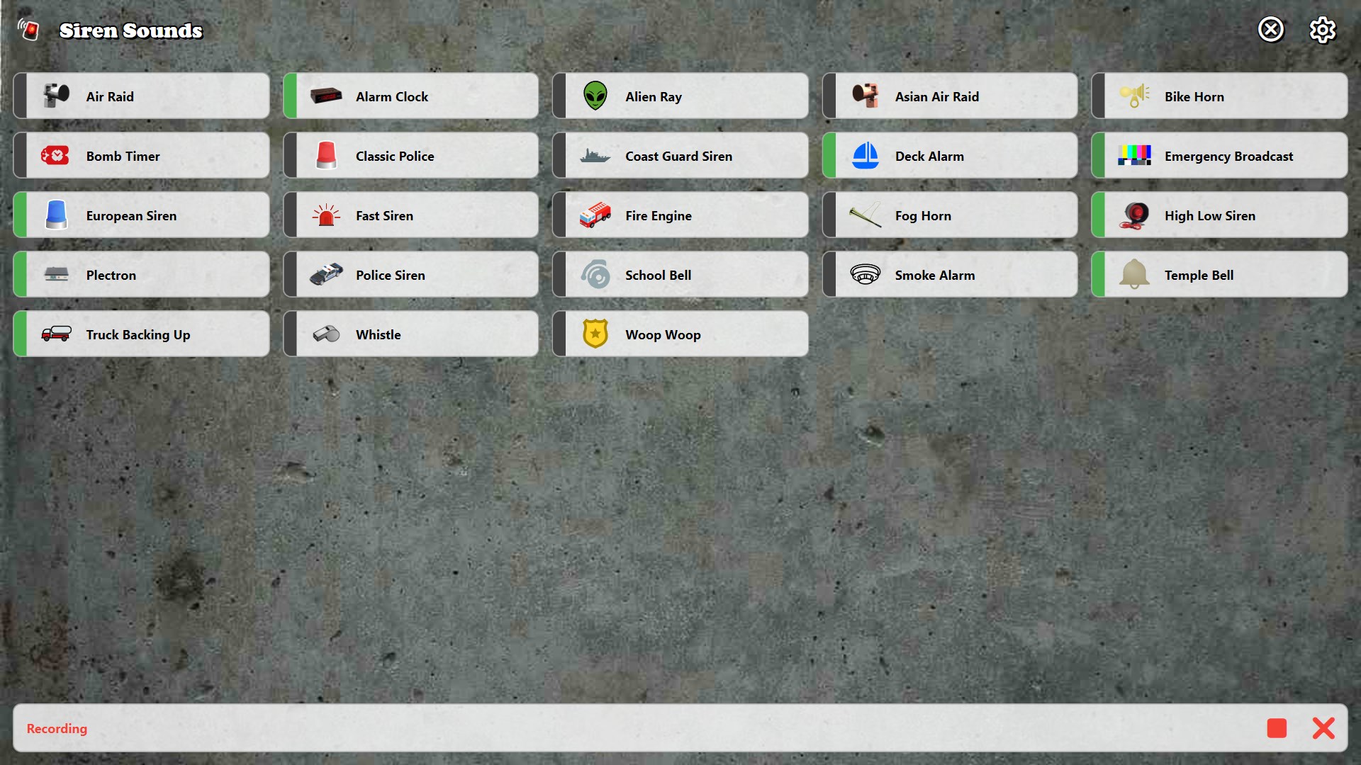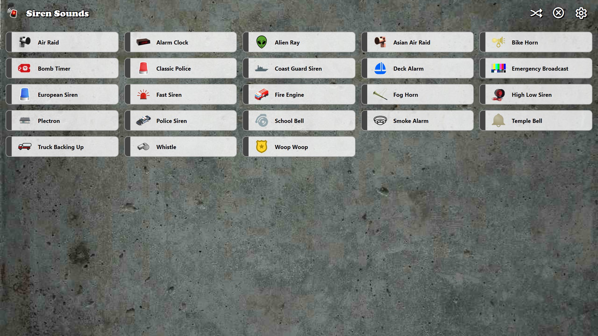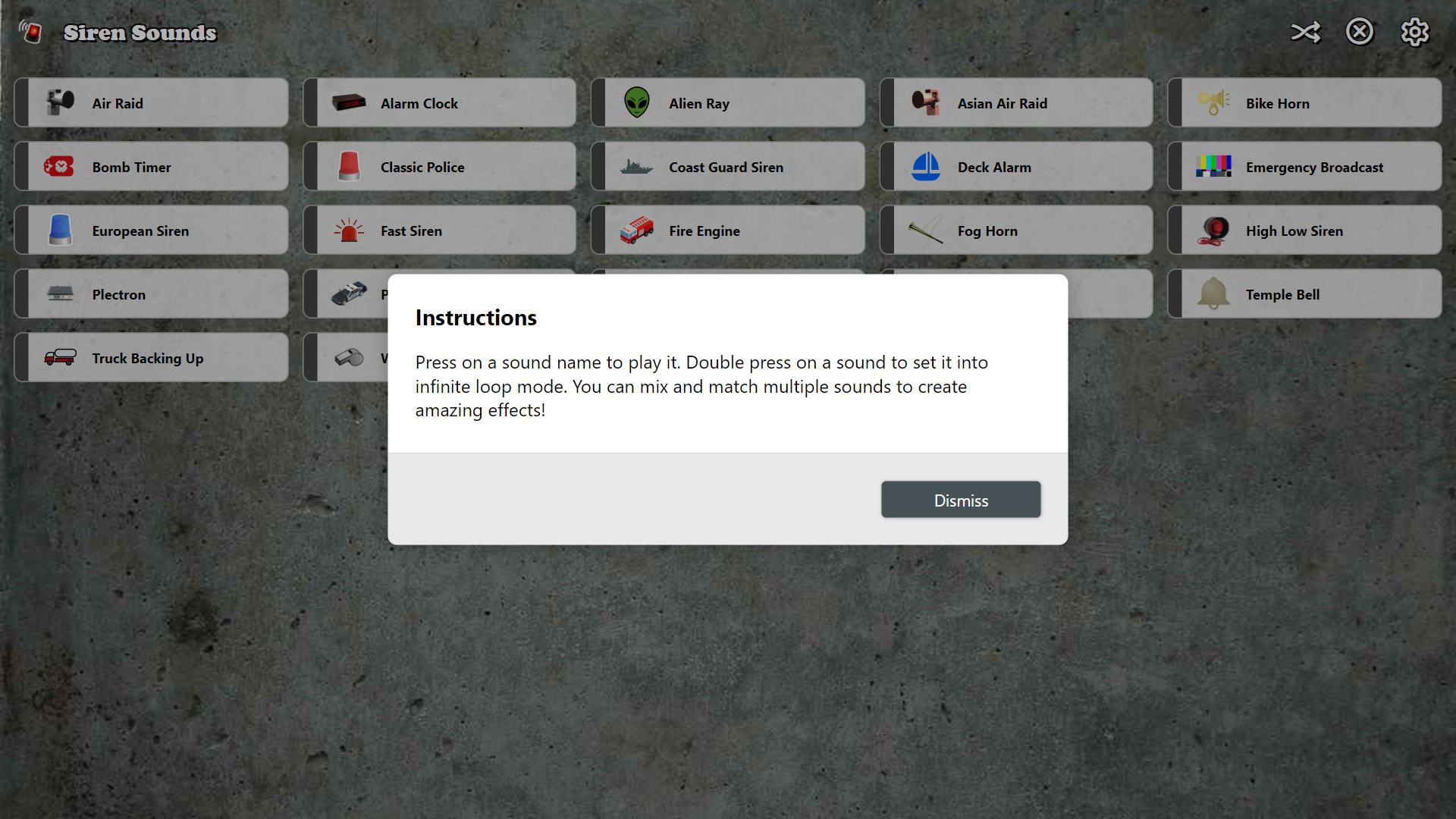 High quality siren sound effects!Play multiple sounds at once or set them into infinite loop mode!
