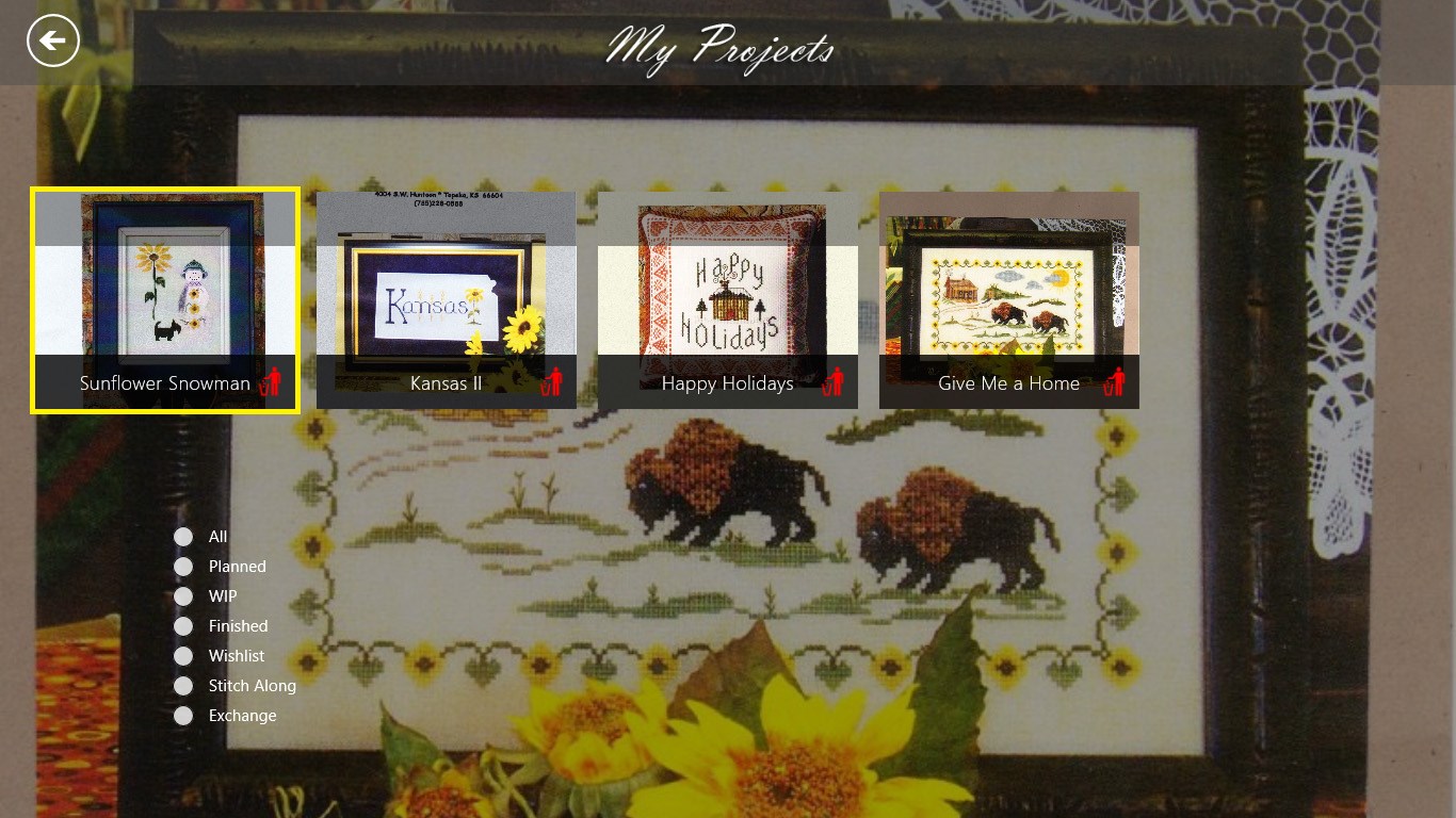 Visually track your projects and categorize them (WIP, Planned, Stitch Exchange, and more)Create shopping lists on the flyShopping lists can be viewed by project based or by needKnow when projects are due at a glanceAdd a photo of your project in one of three ways: Your webcam, the web, or right from your