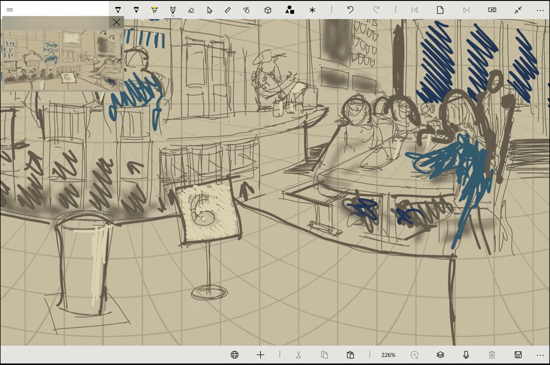 Draw with a variety of pens, pencils, unique brushes, effects, and color palettes. (not on Xbox)