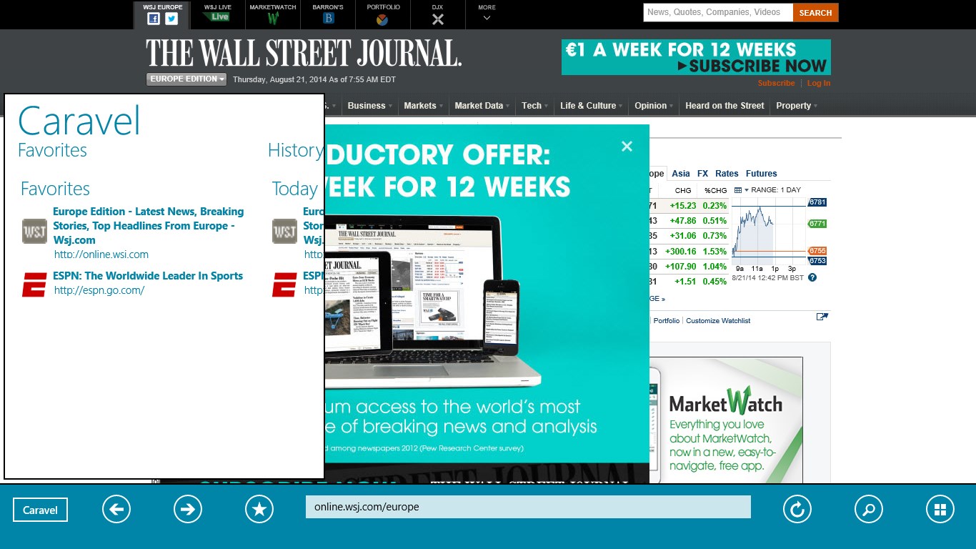 Caravel is a browser specifically optimized for Web browsing on mobile devices: access to features from the toolbar is more efficient and simpler than with traditional browsers.