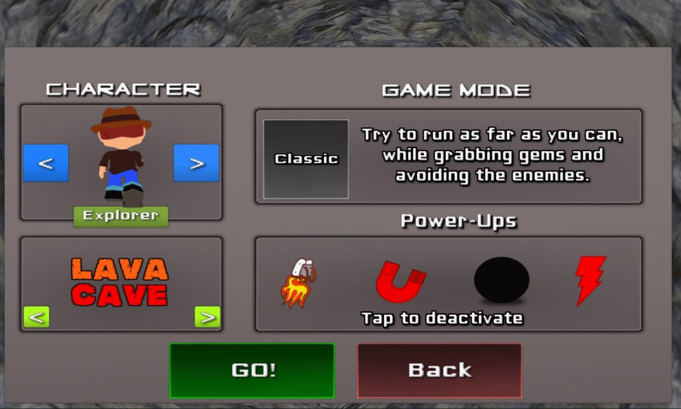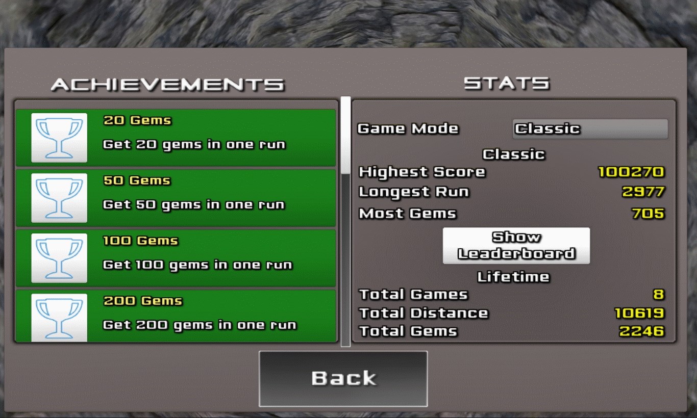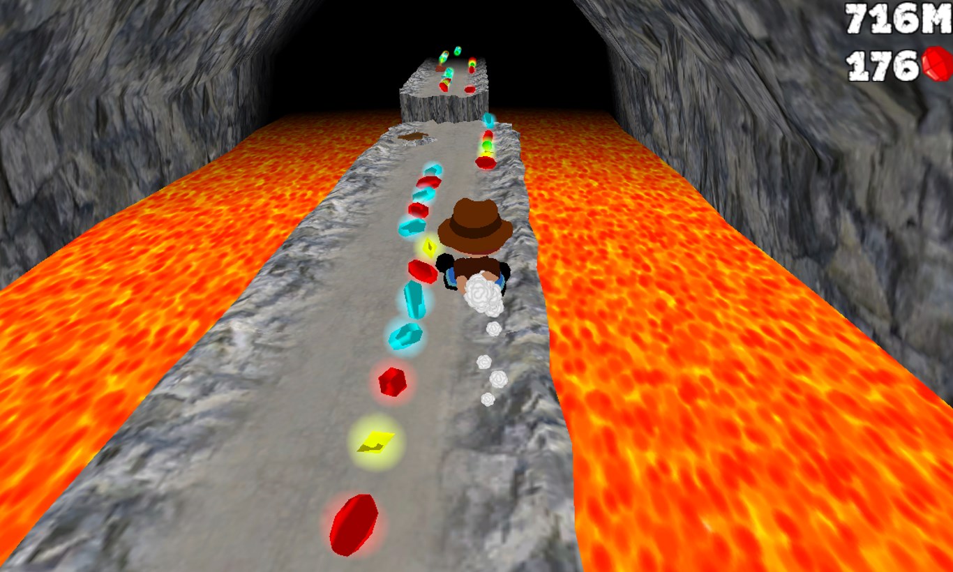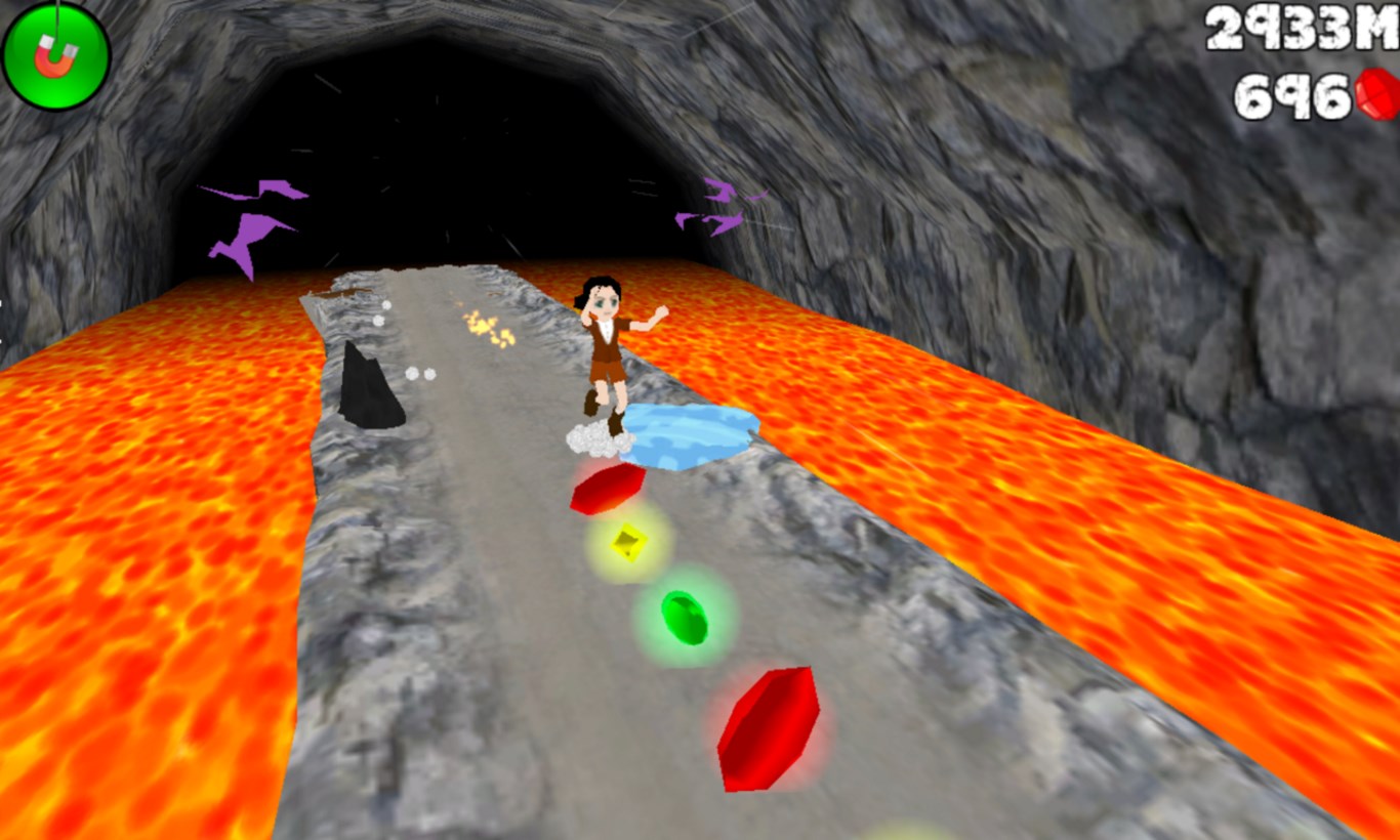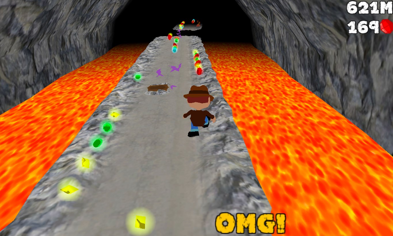 Cave Run is a endless runner similar to the awesome game Temple Run. In order to score big you'll need to help your treasure-hunter collect gems as he attempts to escape the crumbling cave and the lava in this unique theme. Featuring extremely simple gameplay with random levels and obstacles that you must overcome by jumping. How far can you run before falling off a cliff? Don't forget to collect as many gems as you can along the way since they will help the final score! One run is all you will need to see how addictive this game is! Extremely fun and fast paced game. Includes many achievements to be beaten and new content added every month.