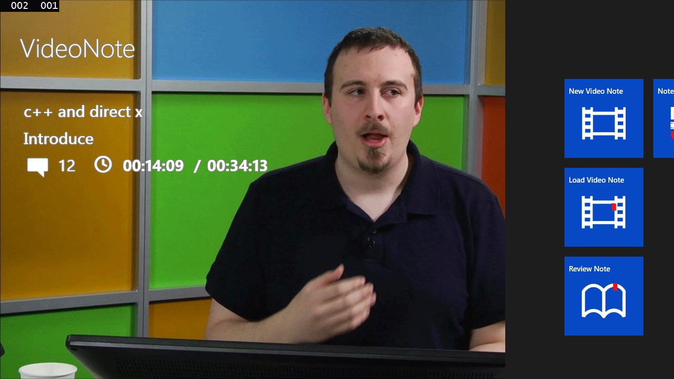VideoNote is a video player app that provides the user easily marks and notes the interested position without interrupt the video playing. The user also can edit or delete the bookmarks and notes after he/she watch the video. And the bookmarks and notes can export to JPEG and JSON format files into assign folder, so that the user can easily share with other users.