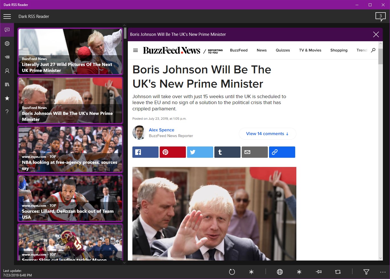 Step 4: Use Dark RSS Reader