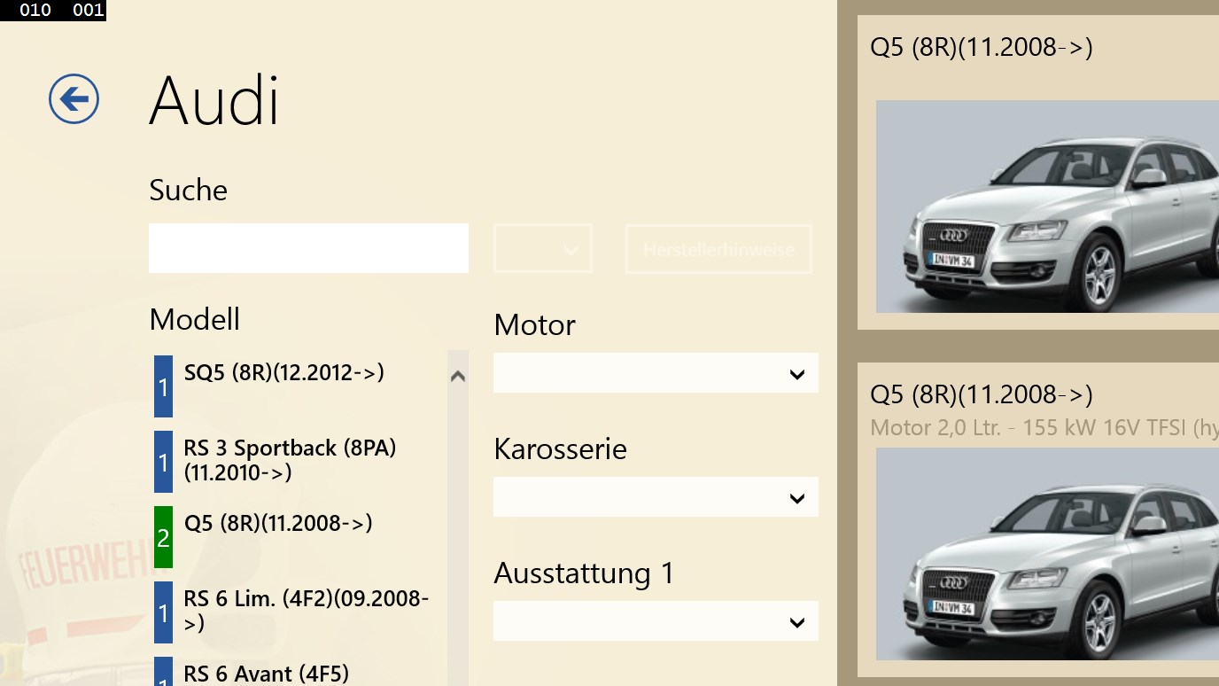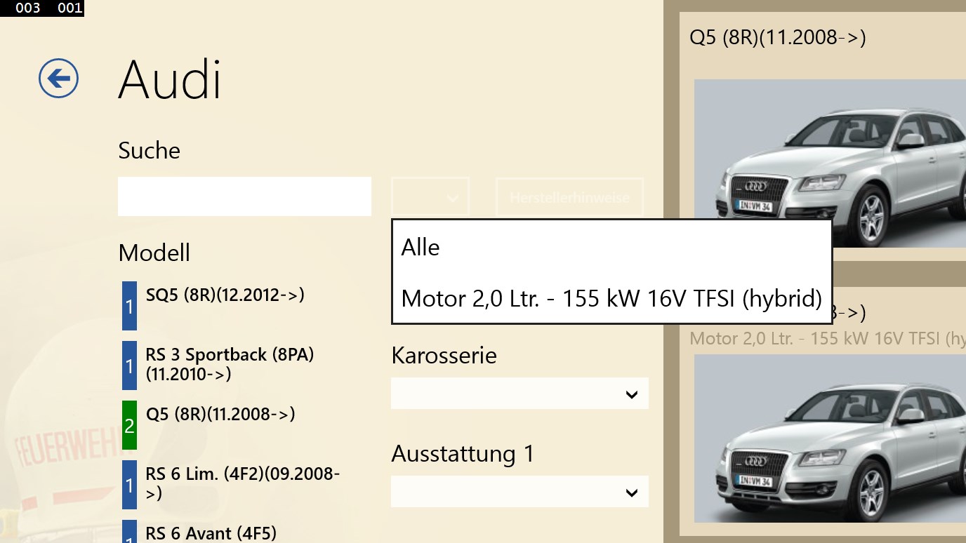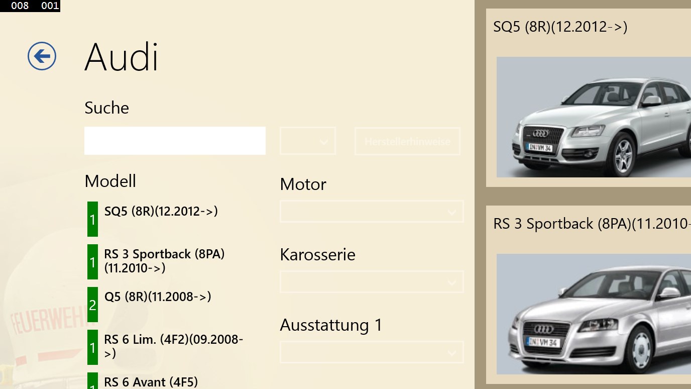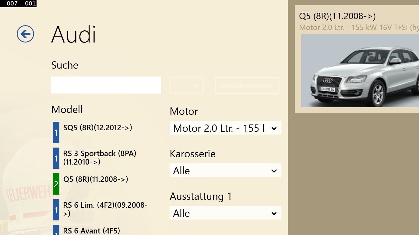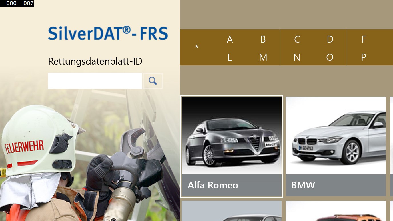 SilverDAT® - FRS ist ein System zum Abruf von originalen Rettungsdatenblättern der Hersteller bzw. Importeure von Kraftfahrzeugen für Rettungsleitstellen, Feuerwehren und Rettungskräfte. Das Programm profitiert von den Praxiserfahrungen der Kfz-Hersteller, Importeure und Feuerwehren. Die übersichtliche Fahrzeugauswahl, garantiert eine schnelle und sichere Auswahl des richtigen Rettungsdatenblattes. Visuell unterstützt wird der Anwender dabei durch die Integration von Fahrzeugbildern. ANMERKUNG: Die App wird als Demo-Version mit Testdaten installiert. Die vollständige Version kann bei DAT bestellt werden und muss gesondert mit der SilverDAT Desktop Anwendung side-by-side installiert werden. Sollten Sie die vollständige schon installiert haben, wird diese App automatisch alle kostenpflichtigen Daten übernehmen.