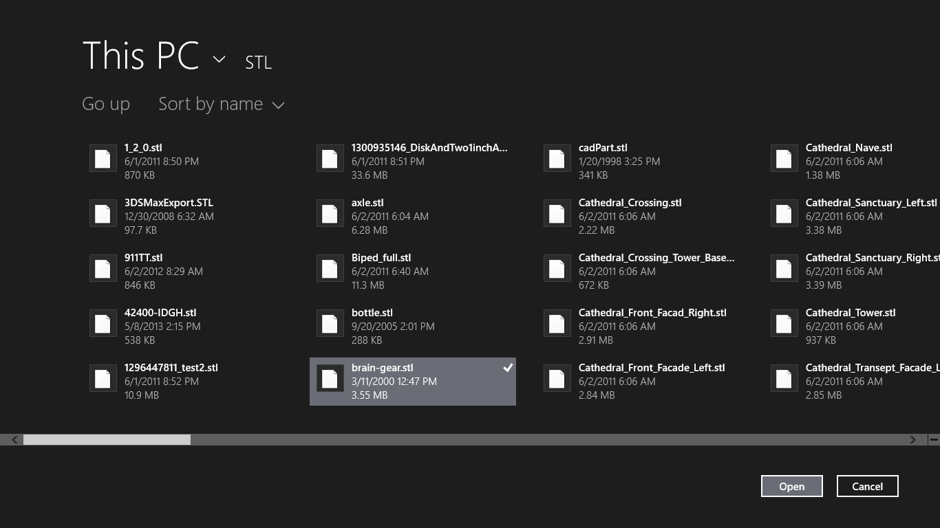 The app supports opening files located in SkyDrive or local drive. You can also use it to open 3D files that you received as email attachments. The app provides native support for .zip file. You can use it to open zipped 3D files in zip format directly without unzipping them first. You can choose to view 3D files individually, or select multiple 3D files and view them together. This could be very helpful when you want to compare different 3D assets.
