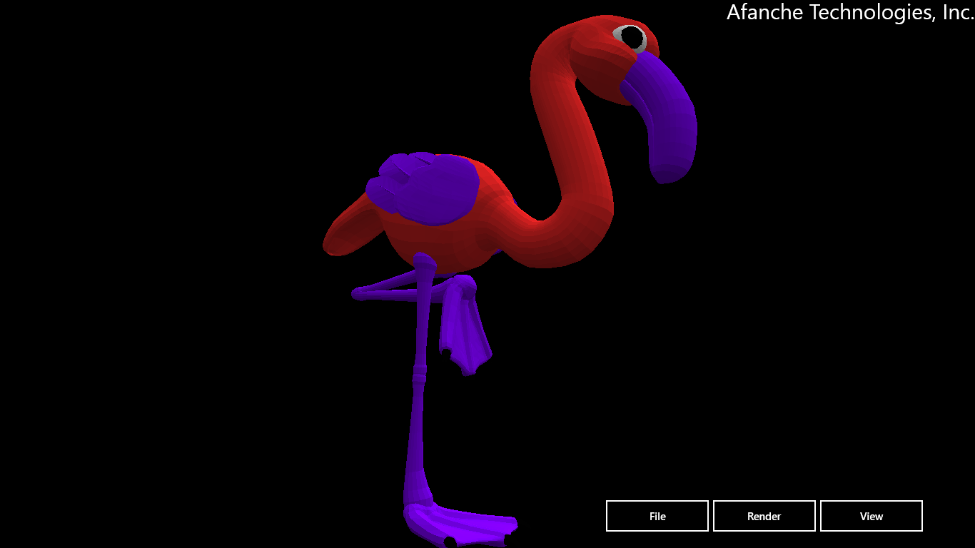 The app is specially designed for touch screen and Microsoft Modern Style User Interface. It supports both touch and mouse. It provides many 3D features including rotating model with finger movement, zooming in/out, panning, changing rendering color, changing rendering background color, choosing surface or wireframe rendering mode, etc. You can also use it to find out information about your file, for instance, the height, width and depth of your model, total surface area, total volume, etc.