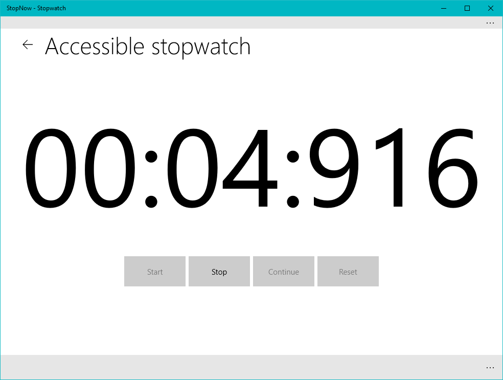 StopwatchCapturing of lap timesPrevent lockscreenInstant startupRuns with minimum permissionsExport to Excel (CSV) fileAccessibility modeScreen reader supportKeyboard navigationMulti stopwatchPin stopwatches to the Windows Start pageLive tile with recent app updatesCountdown timerMulti timerNotifications even when the app is not running