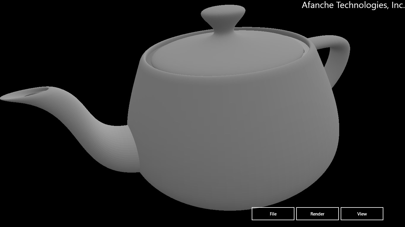 The app is specially designed for touch screen and Microsoft Modern Style User Interface. It supports both touch and mouse. It provides many 3D features including rotating model with finger movement, zooming in/out, panning, changing rendering color, changing rendering background color, choosing surface or wireframe rendering mode, etc. You can also use it to find out information about your file, for instance, the height, width and depth of your model, total surface area, total volume, etc.