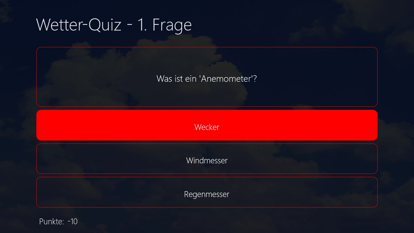 Wetter-Quiz mit zahlreichen Fragenautomatische Auswertung