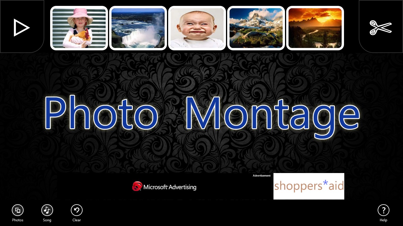 Photo Montage is an easy, quick way to put some of your photos to motion with your selected song. You can add, remove and even re-order the photos with ease. Selecting photos can be done from your local device, network and even SkyDrive! The montage is then timed to the length of your selected song.
