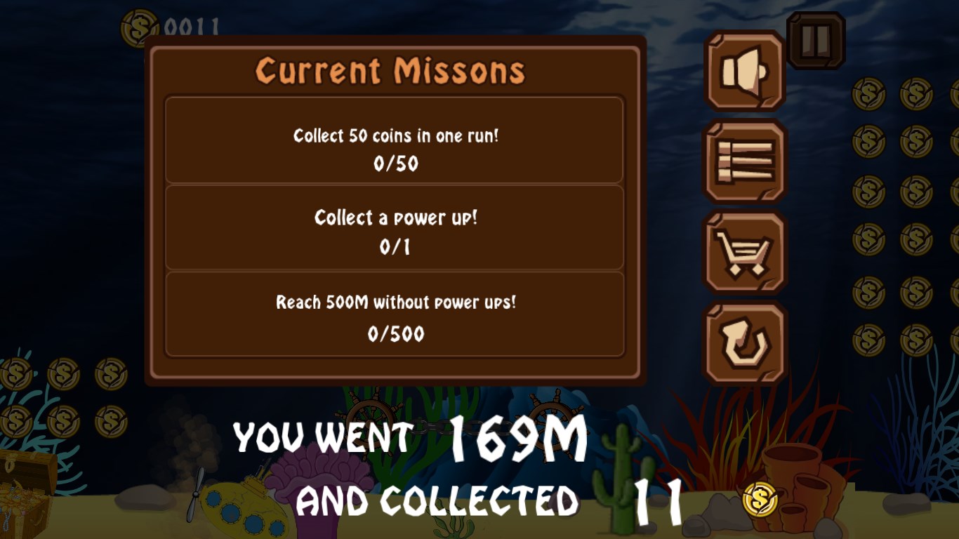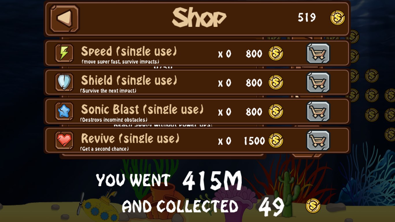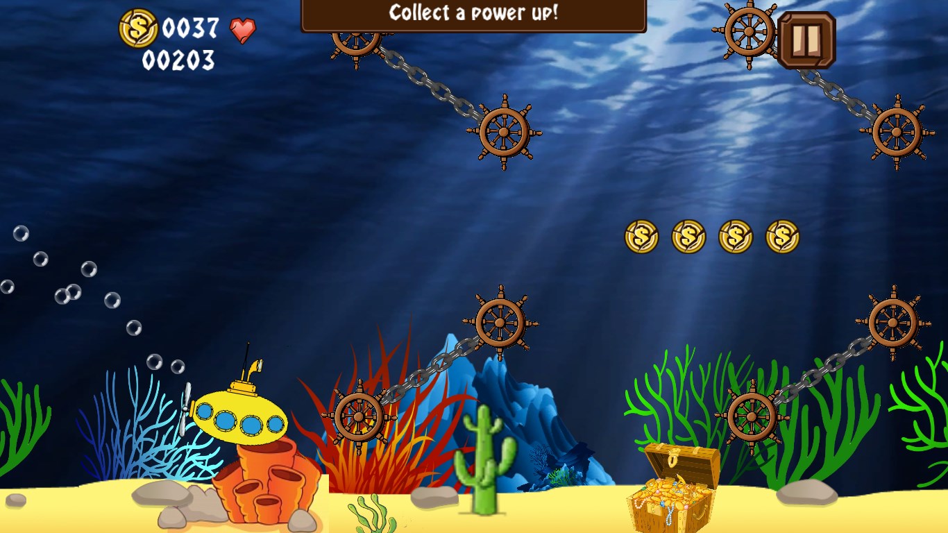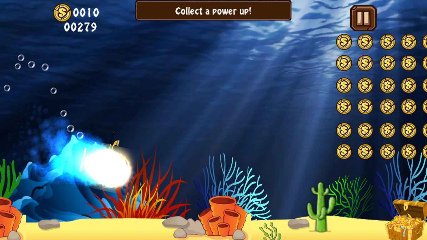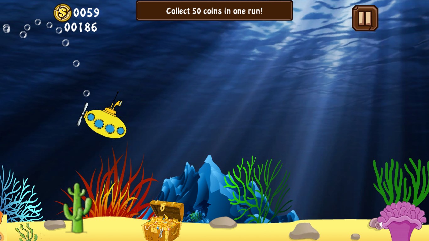 Dive to deep ocean and explore the under water world. The mines are highly explosive and will destroy your submarine. So be aware of them. The torpedo are thrown very often, be aware of them. Collect coins as much as you can and do shopping.