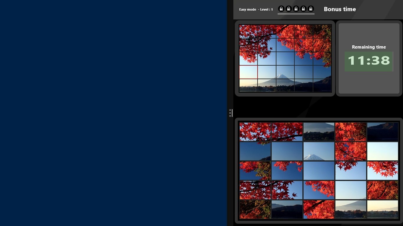 As you solve five puzzles the amount of puzzle tiles increase.