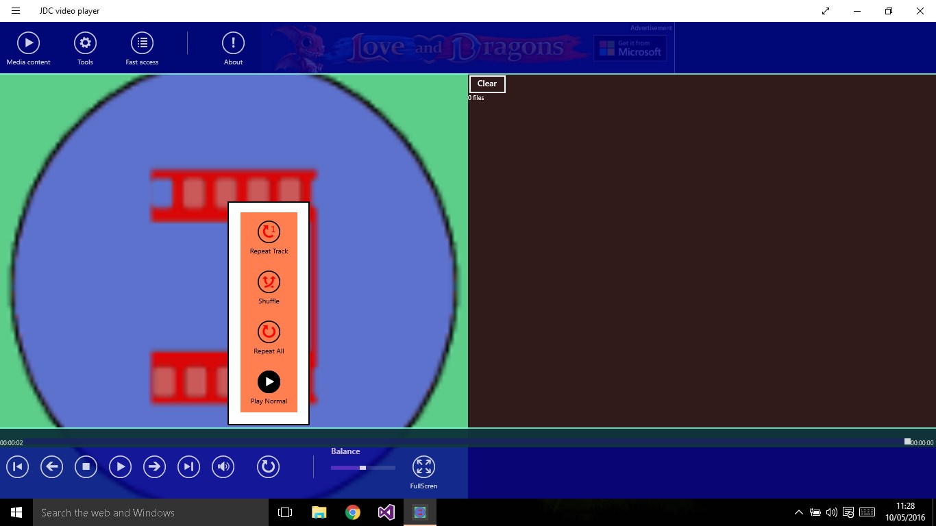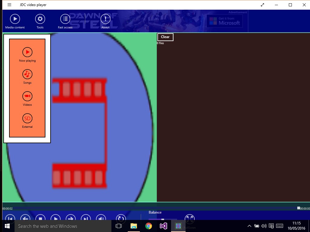 This is a basic video player app for windows 8.1 and also works in windows 10. it plays video and music files on most formats. Current release supports the following extensions: