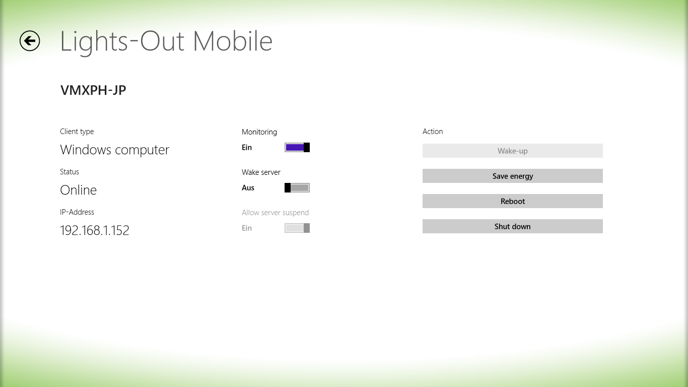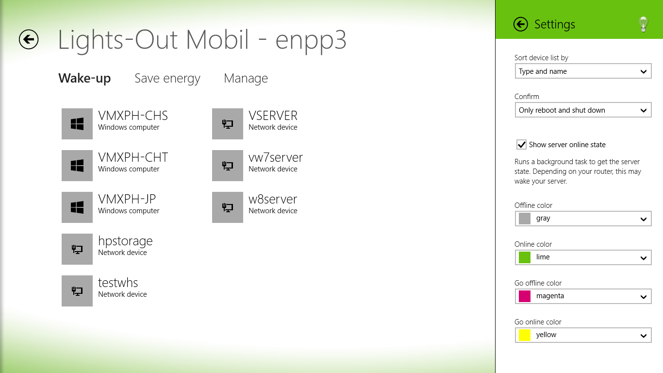 Easily manage your client computersWake-up, save energy, shutdown and reboot server and client computersWorks with multiple servers!User friendly with adjustable colorsRequires Lights-Out on a Windows Home or Small Business Server or Windows Server 2012 (R2) Essentials