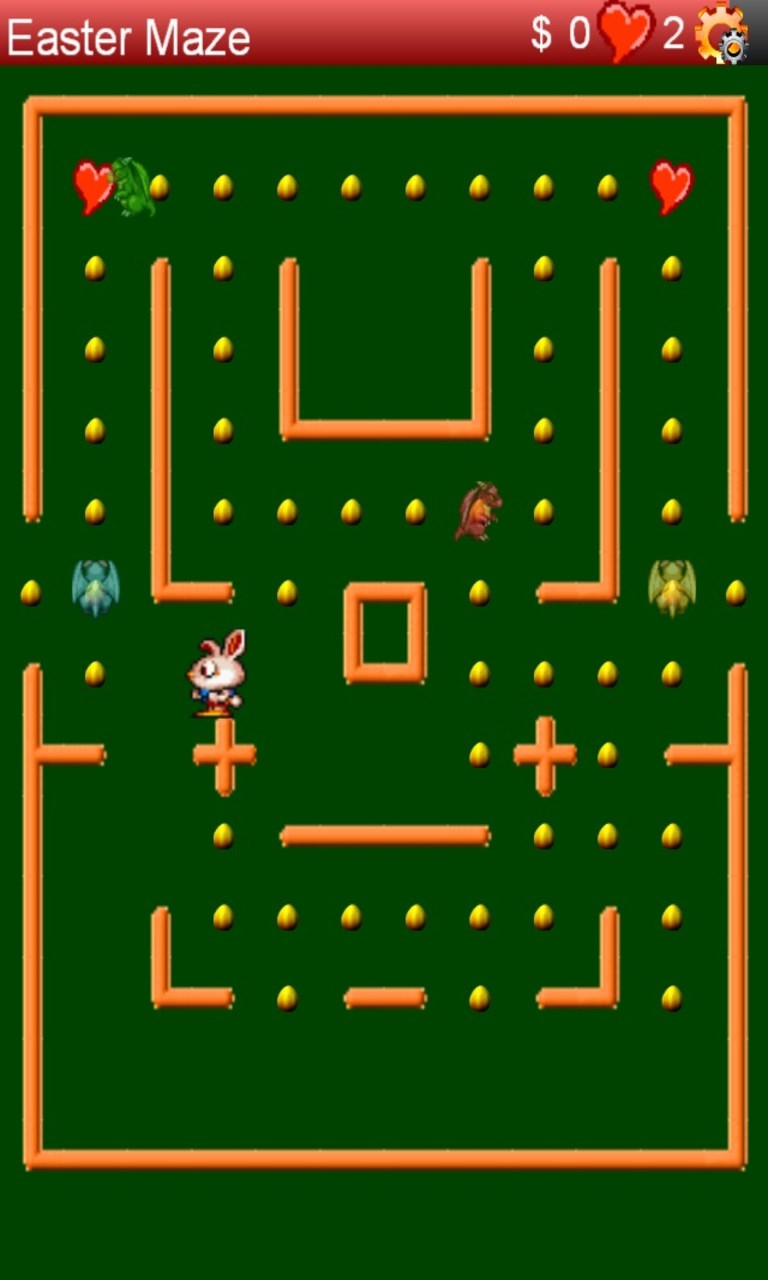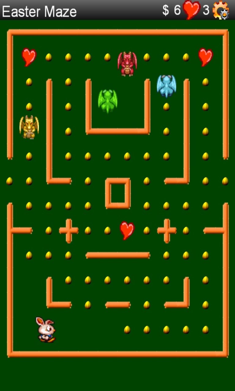 Enjoy this incarnation of the arcade classics. Help Easter Bunny to collect all the eggs and escape mean dragons so he can earn bonus points and move to the next level. Get a heart (at a penalty) to become invincible and chase dragons away. Be careful, as you advance, dragons become smarter and faster.