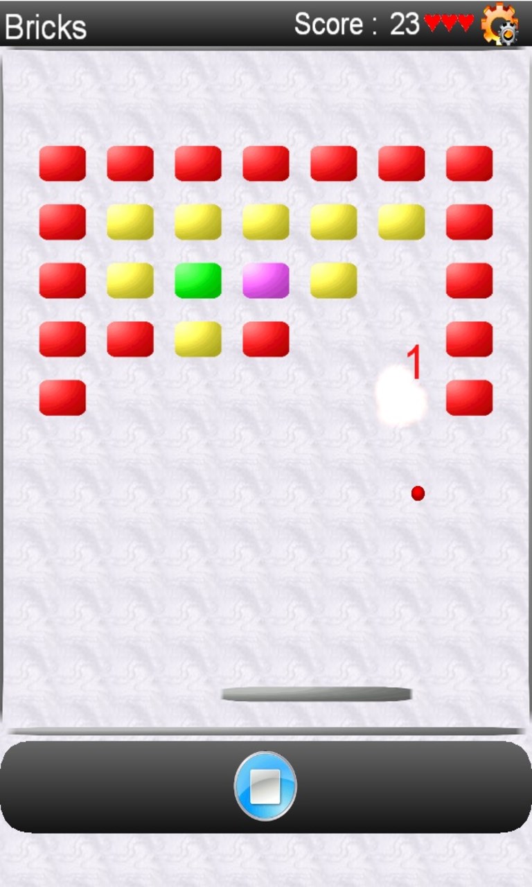 Tilt the phone to control the paddle to prevent the ball from falling off the screen. Clear the screen of the bricks to earn high score and advance to the next level. Use menu (top right corner) to restart the game and check the score.